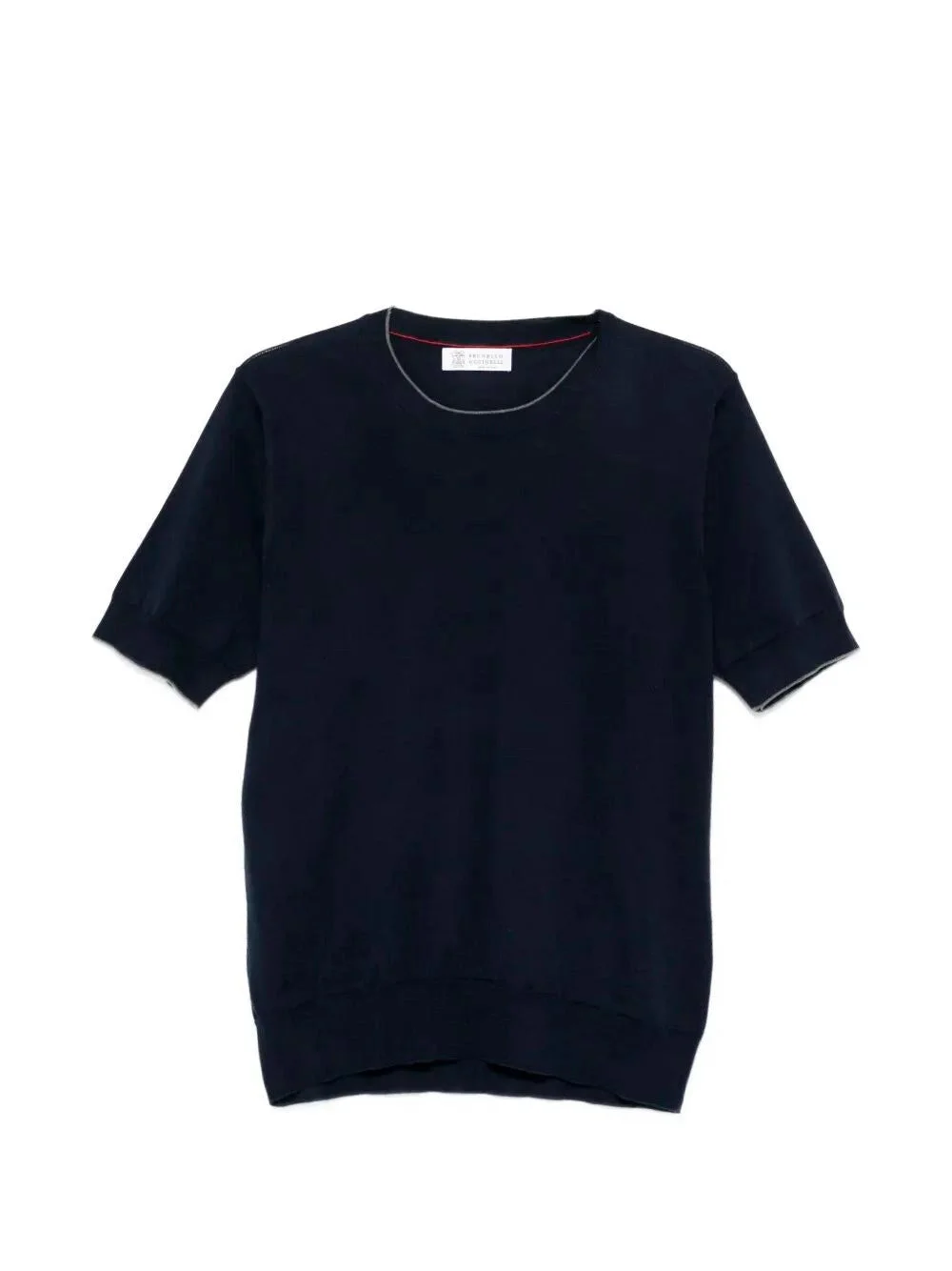 Brunello Cucinelli Men Cotton Lightweight Knit T-Shirt With Contrast Details