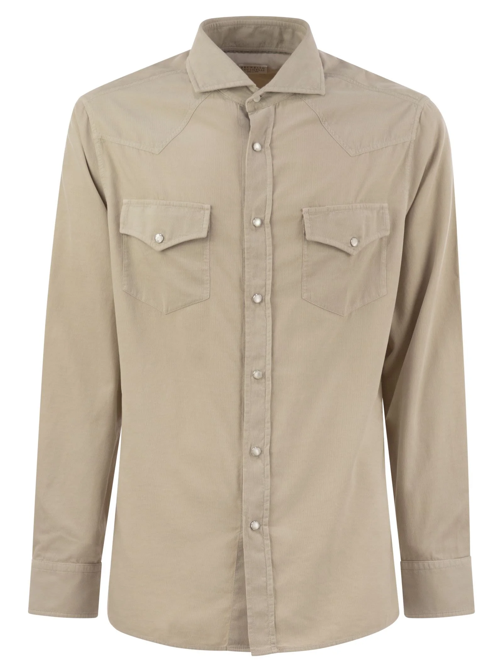 Garment-dyed easy fit western shirt in narrow wale corduroy