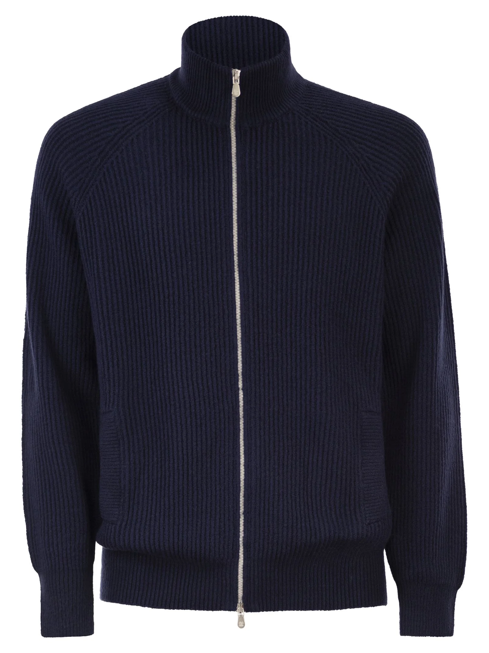 Malfilé cotton English rib cardigan with raglan sleeves and zipper