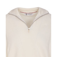 Brunello Cucinelli Men English Rib Cotton Sweater With Zip Opening