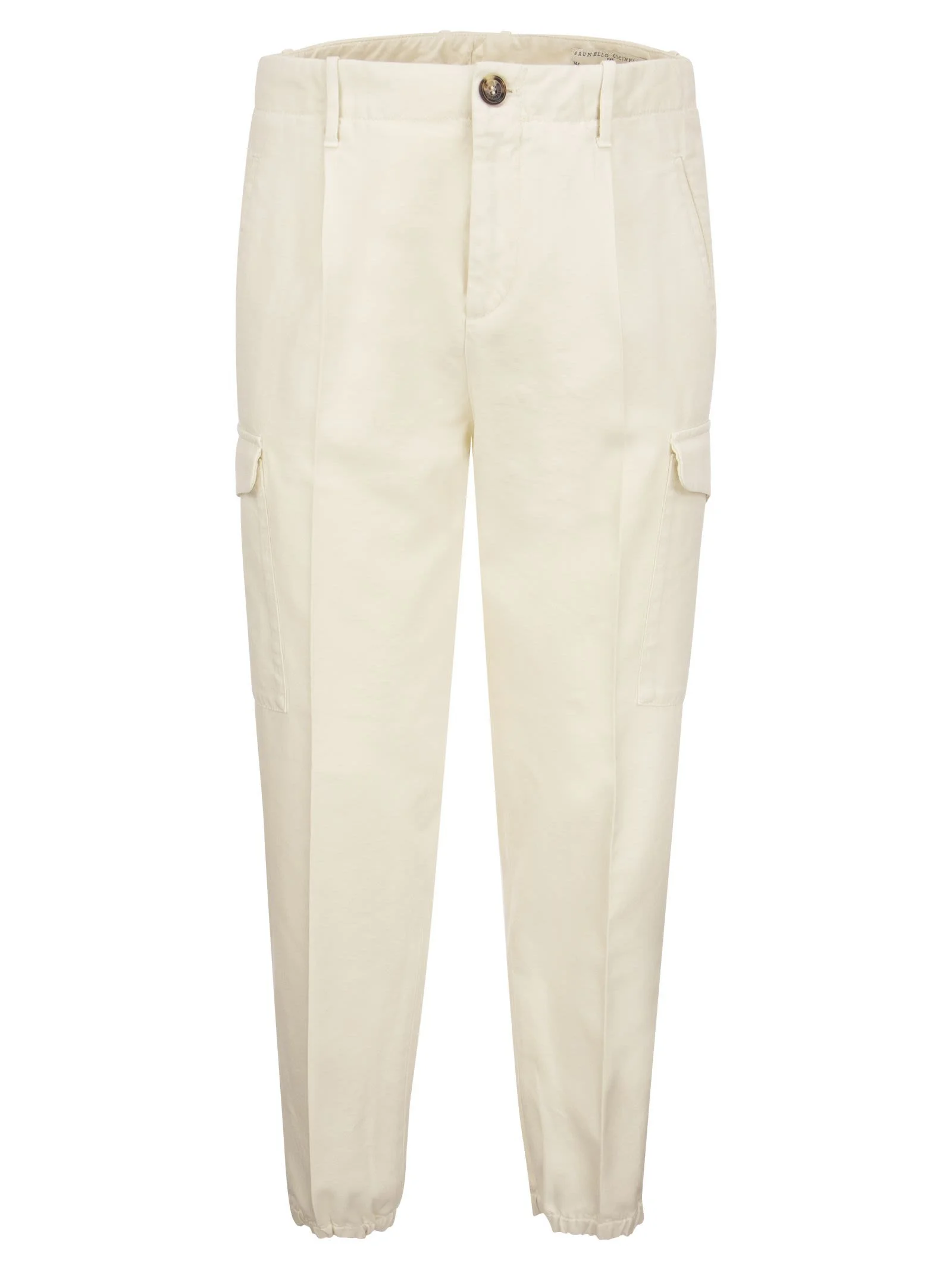 Brunello Cucinelli Men Ergonomic Fit Trousers In Garment-Dyed Comfort Cotton Drill With Darts, Cargo