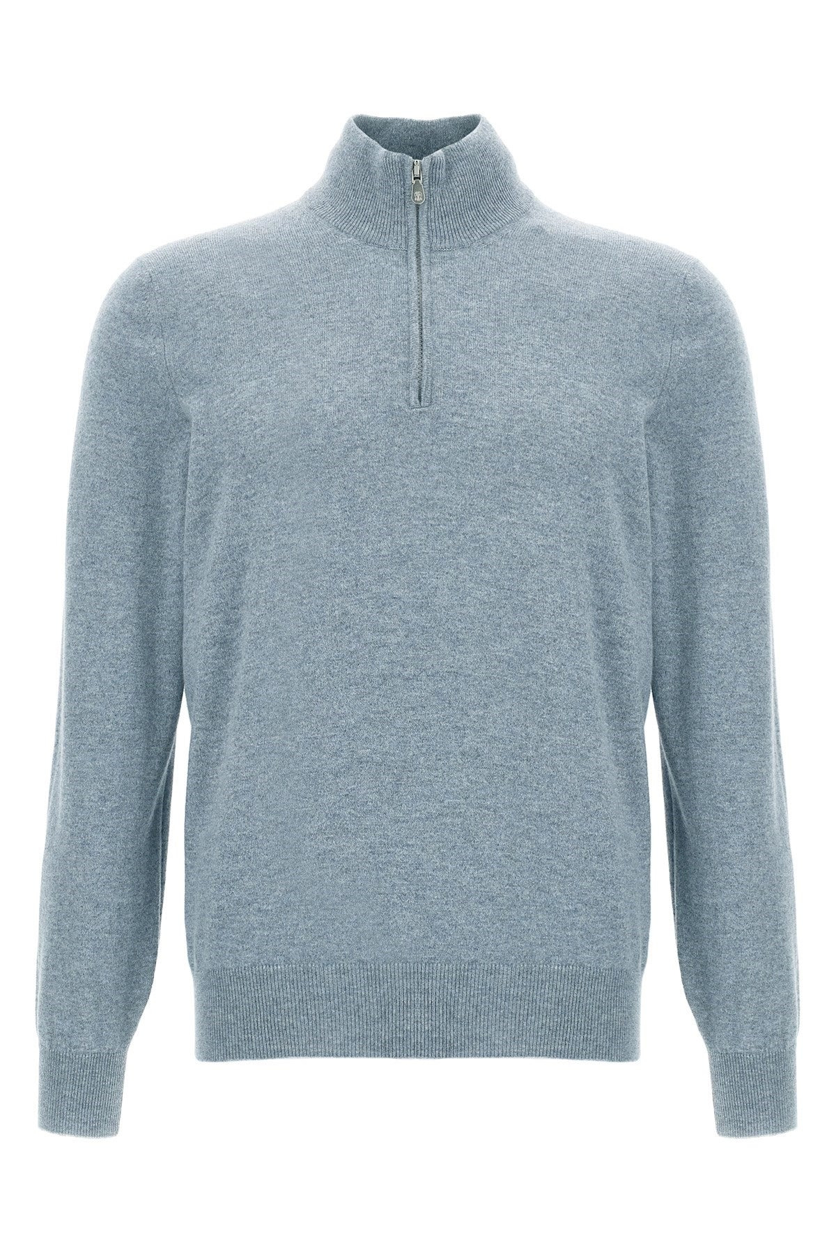 Cashmere sweater with contrast details, high neck, front half-zip, long cuffed sleeves. Color: Light Blue Size & Fit: true to size fit Composition: 100% cashmere Made in: Italy SKU: M2200124CFF33 Our Products Are 100% Genuine. In All Cases We Stand By The Authenticity Of Every Product Sold On Our Site. All sales are final and we only accept returns for quality issue. Buyer is responsible for any import tax/duty if applicable.