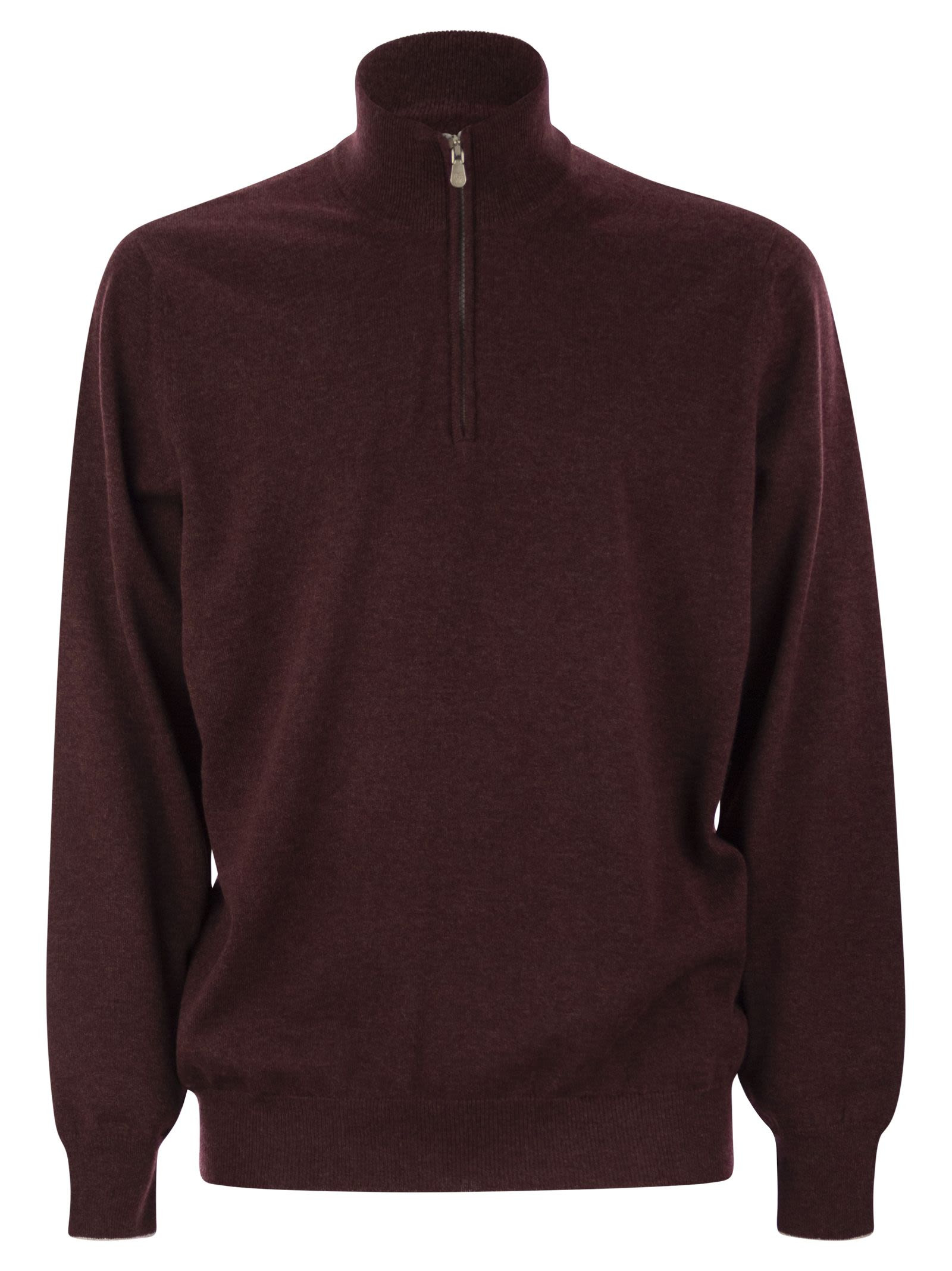 The refined pure cashmere yarn, an icon of the Brunello Cucinelli collections, elevates the style of the turtleneck sweater. Contrasting details on the half zip fastening and on the cuff edges add a sophisticated touch to the garment, which offers a regular fit with fitted lines. The noble cashmere fibre is characterised by its extreme fineness and valuable heat-insulating qualities that guarantee at the same time warmth, protection and lightness when worn. - Zip opening - High collar in rib knit - Rib knit cuffs and hem - Shaved knit DESIGNER ID: M2200124 CEG54 100% Cashmere Size Type: IT SKU: M2200124CEG54 Our Products Are 100% Genuine. In All Cases We Stand By The Authenticity Of Every Product Sold On Our Site. All sales are final and we only accept returns for quality issue. Buyer is responsible for any import tax/duty if applicable.