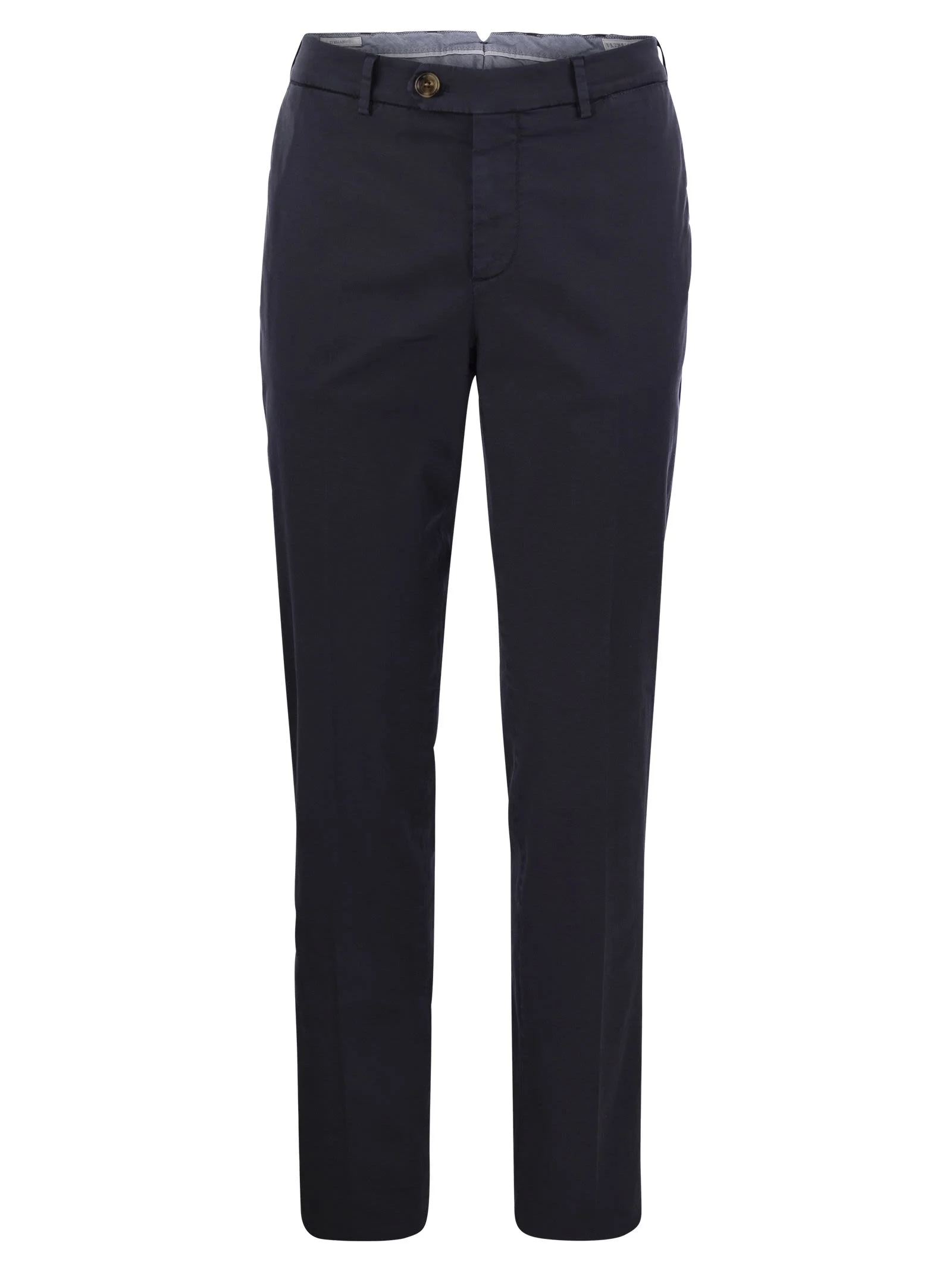 The classic character of the Italian fit trousers is enhanced by the quality of American Pima cotton gabardine, a fabric with superior characteristics. The Italian fit has a close-fitting cut, but at the same time offers slightly softer lines than more traditional cuts. - Italian fit: the fit is slim and balanced, with an even hip and waist - Button and counter-button zip fastening - Front "American" pockets - Buttoned welt back pockets - Knee-length lining - Hem 17.5 cm DESIGNER ID: M289LI1770 C2517 97% Cotton, 3% Elastan Lining: 100% Cotton Lining: 58% Cotton, 42% Polyester Size Type: IT SKU: AB021298 Our Products Are 100% Genuine. In All Cases We Stand By The Authenticity Of Every Product Sold On Our Site. All sales are final and we only accept returns for quality issue. Buyer is responsible for any import tax/duty if applicable.