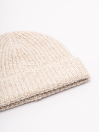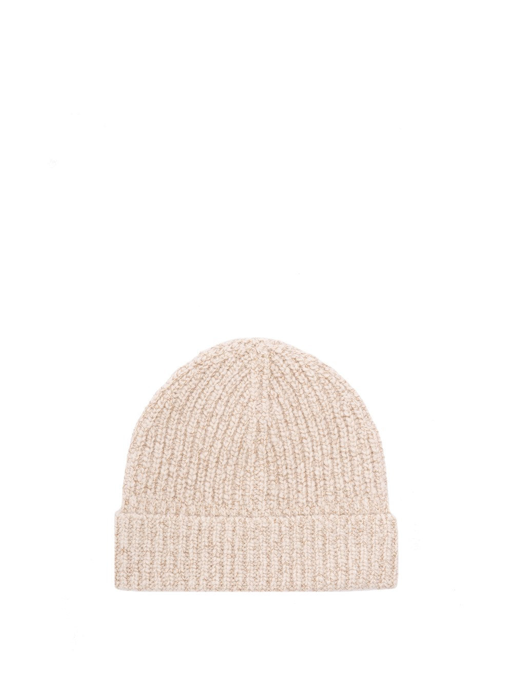 Virgin wool, silk and cashmere English rib knit chiné beanie