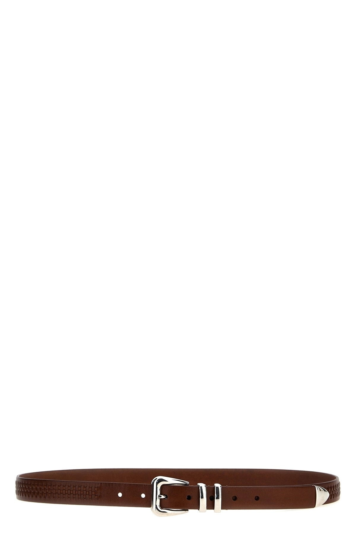 Worked leather belt, metal buckle. Color: Brown Size & Fit: H 2.5 cm Composition: 100% leather Made in: Italy SKU: MAUOA253C6719 Our Products Are 100% Genuine. In All Cases We Stand By The Authenticity Of Every Product Sold On Our Site. All sales are final and we only accept returns for quality issue. Buyer is responsible for any import tax/duty if applicable.