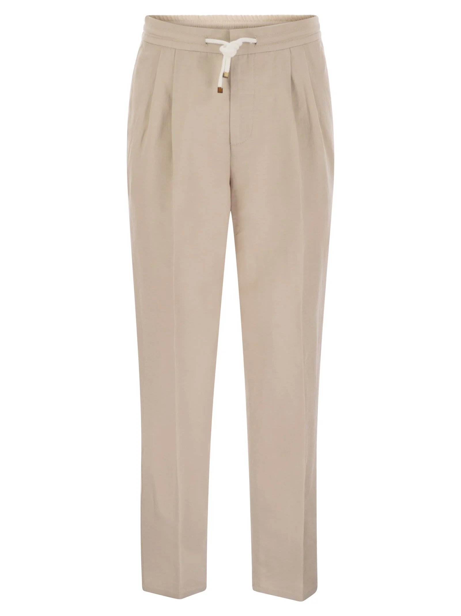 The light texture of the linen and cotton gabardine enhances the casual style of the trousers with a sophisticated effect. The drawstring and double dart details are combined with the modern leisure fit, which offers soft volumes at the pelvis and a slightly lowered waist, while the leg line stays close to the body. The linen and cotton gabardine is a fresh and light fabric, ideal for summer wear. - Zip fastening with metal hooks and drawstring - Front ‘American’ pockets - Back welt pockets - Double dart - Leisure fit: crotch and pelvis are soft and the leg volumes are tapered DESIGNER ID: MH255E1710 C2438 56% Linen, 44% Cotton Lining: 100% Cotton Lining: 60% Acetate, 40% Cupro Size Type: IT SKU: MH255E1710C2438 Our Products Are 100% Genuine. In All Cases We Stand By The Authenticity Of Every Product Sold On Our Site. All sales are final and we only accept returns for quality issue. Buyer is responsible for any import tax/duty if applicable.