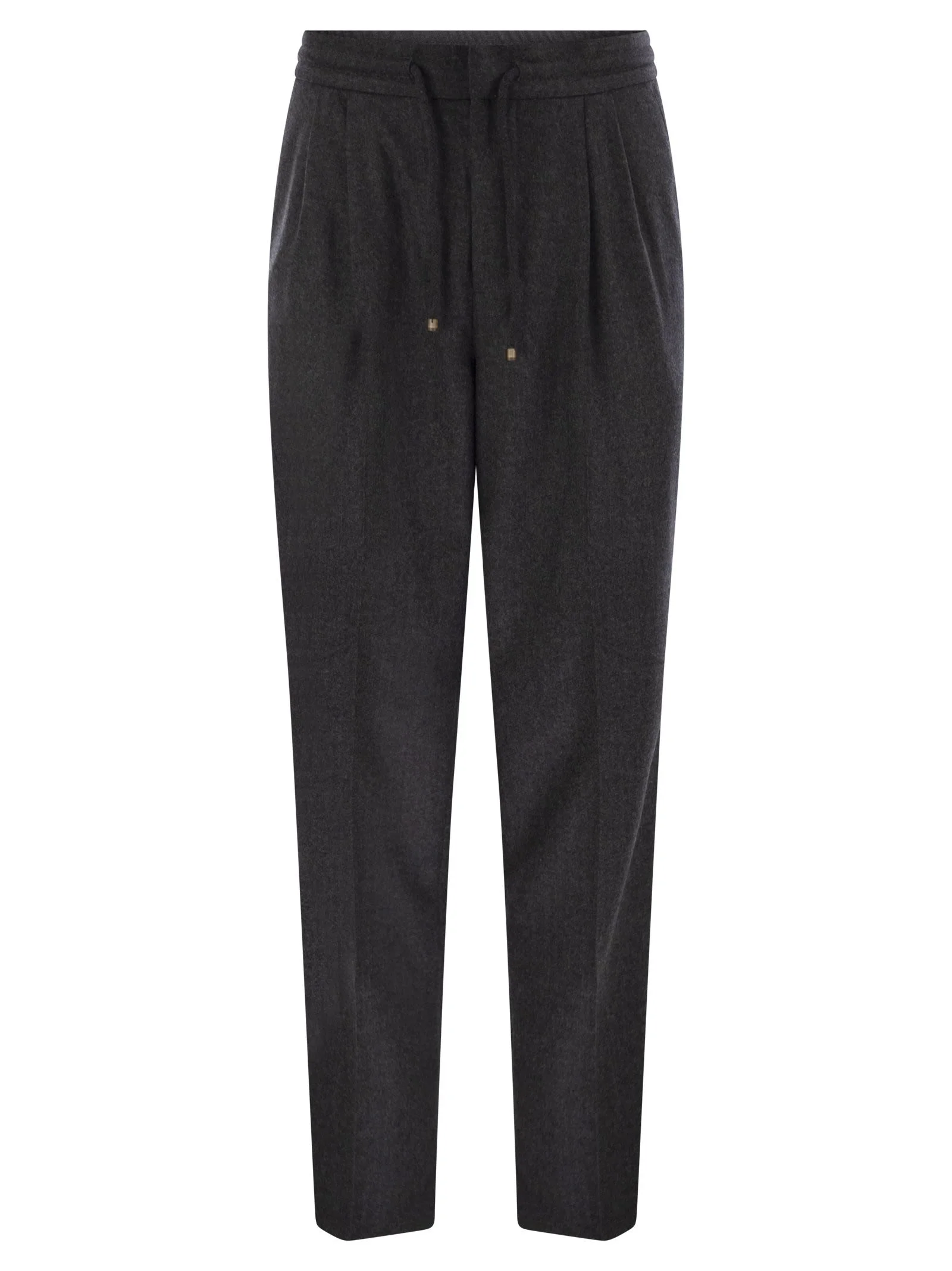 The casual taste of the drawstring trousers is enriched by the fine workmanship of Brunello Cucinelli. The diagonal weave of the flannel and the double dart on the front recall the sartorial inspiration of the garment. The modern leisure fit offers soft volumes on the pelvis and a slightly lowered waist, while the leg line remains close to the body. The light and soft pure wool flannel enhances the noble qualities of the natural fibre, while the twill weave displays the fabric's characteristic diagonal texture. The knee-length lining perfects wearing comfort. - Zip fastening with metal hook, counter-button and drawstring - American" front pockets - Double dart - Back welt pockets - Simple hem - Knee-length lining - Leisure fit: crotch and pelvis are soft and the leg volumes are tapered DESIGNER ID: ME226E1710 C004 100% Virgin wool Lining: 100% Cotton Lining: 100% Viscose Lining: 60% Acetate, 40% Cupro Size Type: IT SKU: ME226E1710C004 Our Products Are 100% Genuine. In All Cases We Stand By The Authenticity Of Every Product Sold On Our Site. All sales are final and we only accept returns for quality issue. Buyer is responsible for any import tax/duty if applicable.