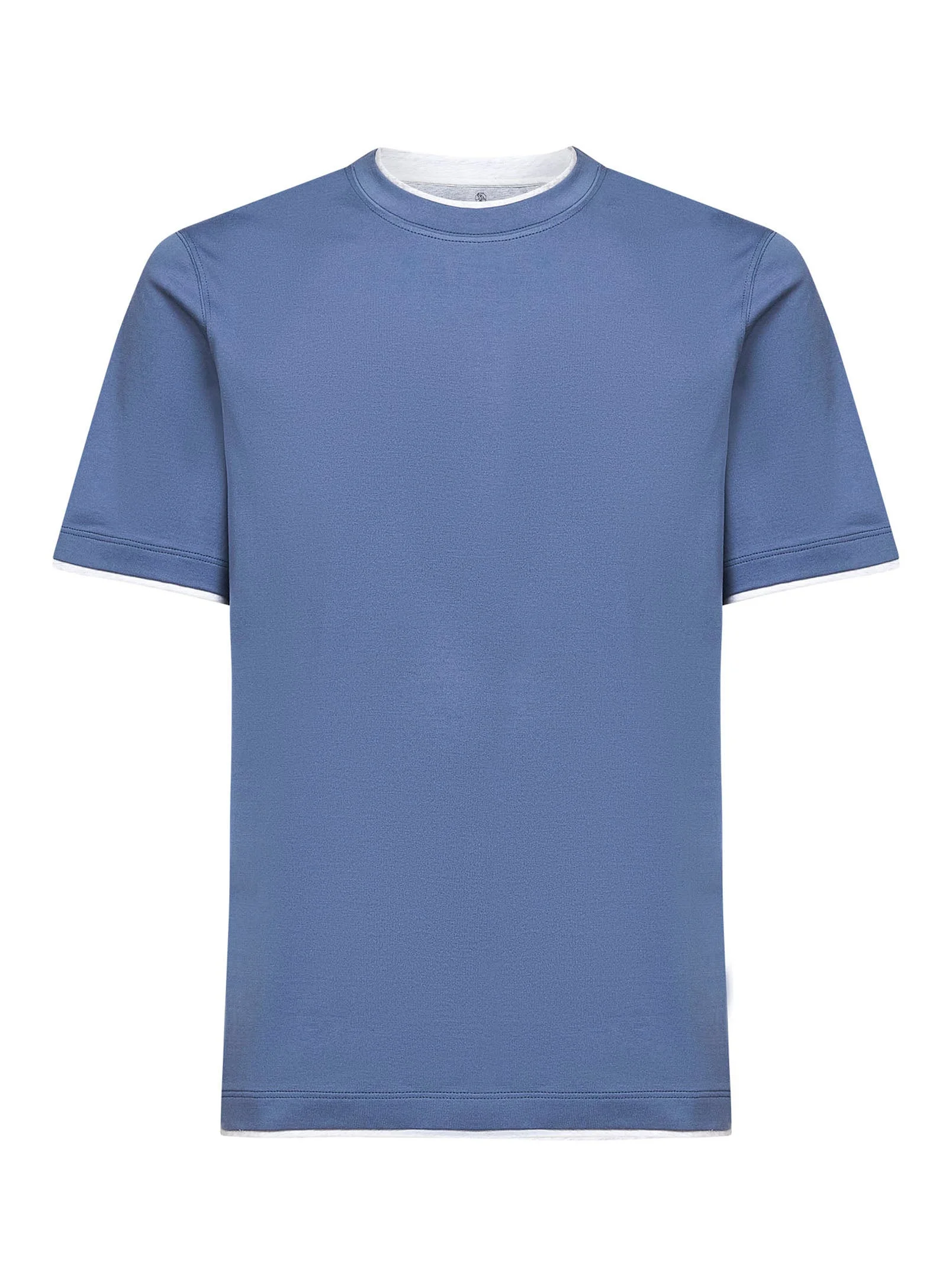 Brunello Cucinelli Men Light Blue Cotton Faux Layering T-Shirt