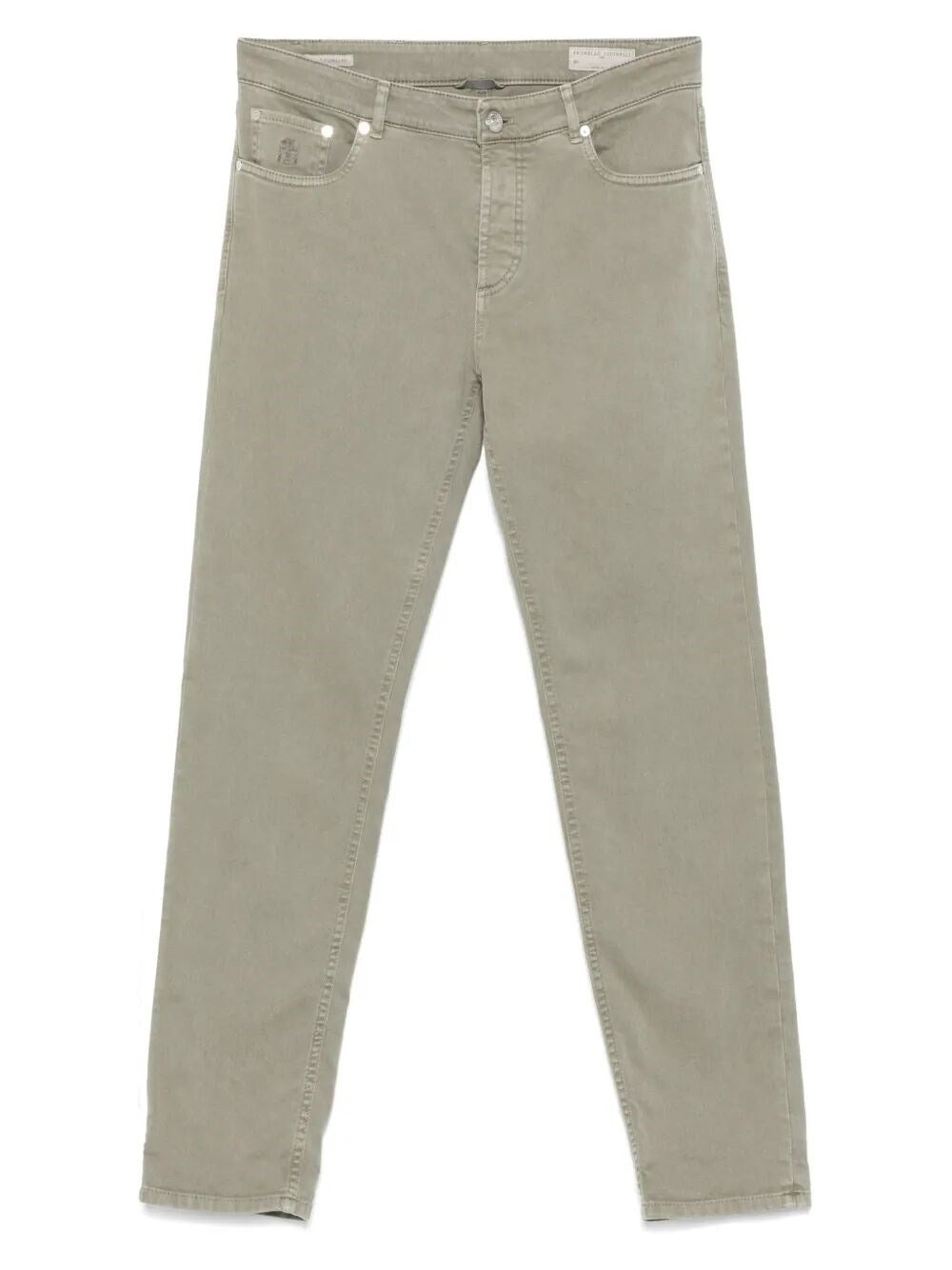 Garment-dyed traditional fit five-pocket trousers in comfort cotton lightweight denim