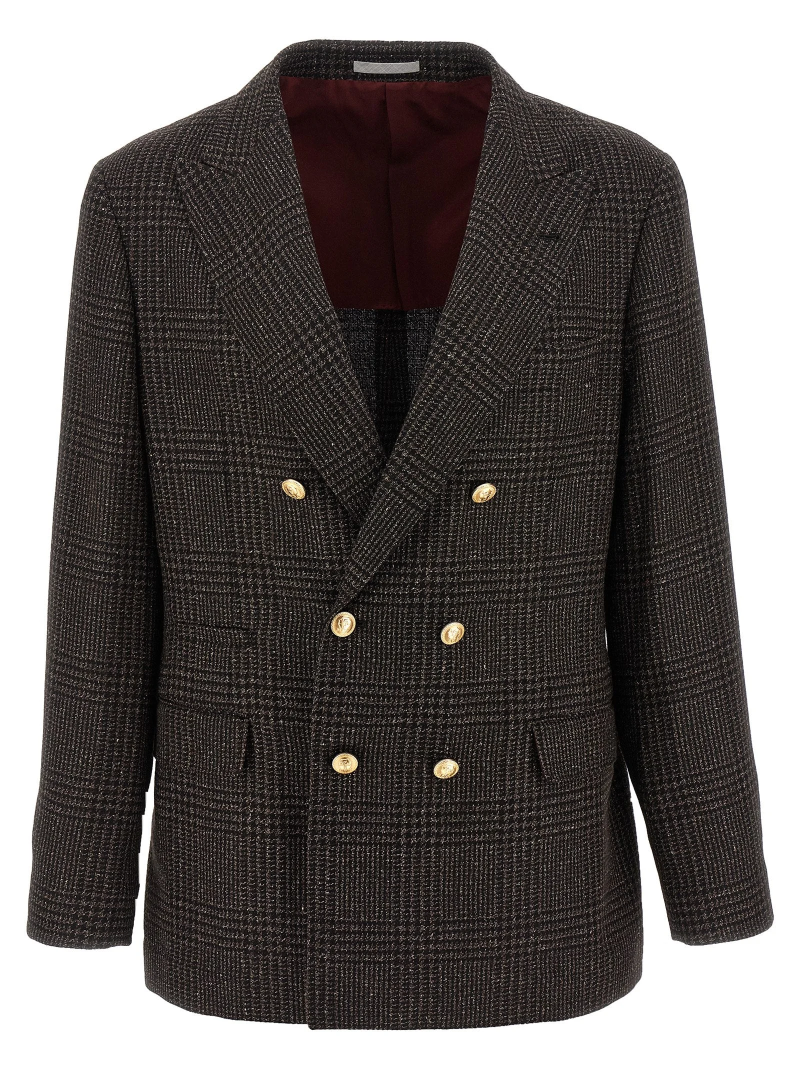 Deconstructed blazer in Prince of Wales of wool, alpaca and silk with gradient effect, one and a half breast model with 6 metal button closure, peak lapels, flap pockets, ticket pocket and chest pocket, two inner pockets with button closure and pen pocket, 'Spalla Solomeo', cuffs with opening buttonholes, half cupro lining, back vents. true to size fit - DROP 7 41% wo, 40% wp, 19% se SKU: MV4167BPDGC040 Our Products Are 100% Genuine. In All Cases We Stand By The Authenticity Of Every Product Sold On Our Site. All sales are final and we only accept returns for quality issue. Buyer is responsible for any import tax/duty if applicable.