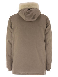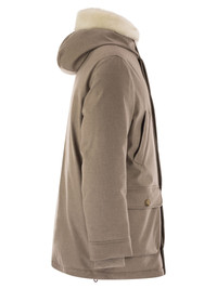 The extremely soft feel of the wool is enhanced by the fur collar, creating a refined contrast with the sophisticated and functional elements. The fit remains regular and comfortable. Wool flannel is a classic lightweight and compact fabric that perfectly expresses the qualities of this fine natural fibre. High-quality goose down and feather padding completes the garment. - Double closure with zip and buttons - The collar can be worn upright - High pocket - Low patch pockets - Buttoned cuffs DESIGNER ID: MM4701993 CHC81 100% Wool Lining: 100% Nylon Knit part: 100% Cashmere Pocket lining: 100% Cotton Filling container: 100% Polyammide Filling: 90% Goose down, 10% Goose feather Inserts Fur Size Type: INT SKU: MM4701993CHC81 Our Products Are 100% Genuine. In All Cases We Stand By The Authenticity Of Every Product Sold On Our Site. All sales are final and we only accept returns for quality issue. Buyer is responsible for any import tax/duty if applicable.
