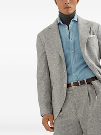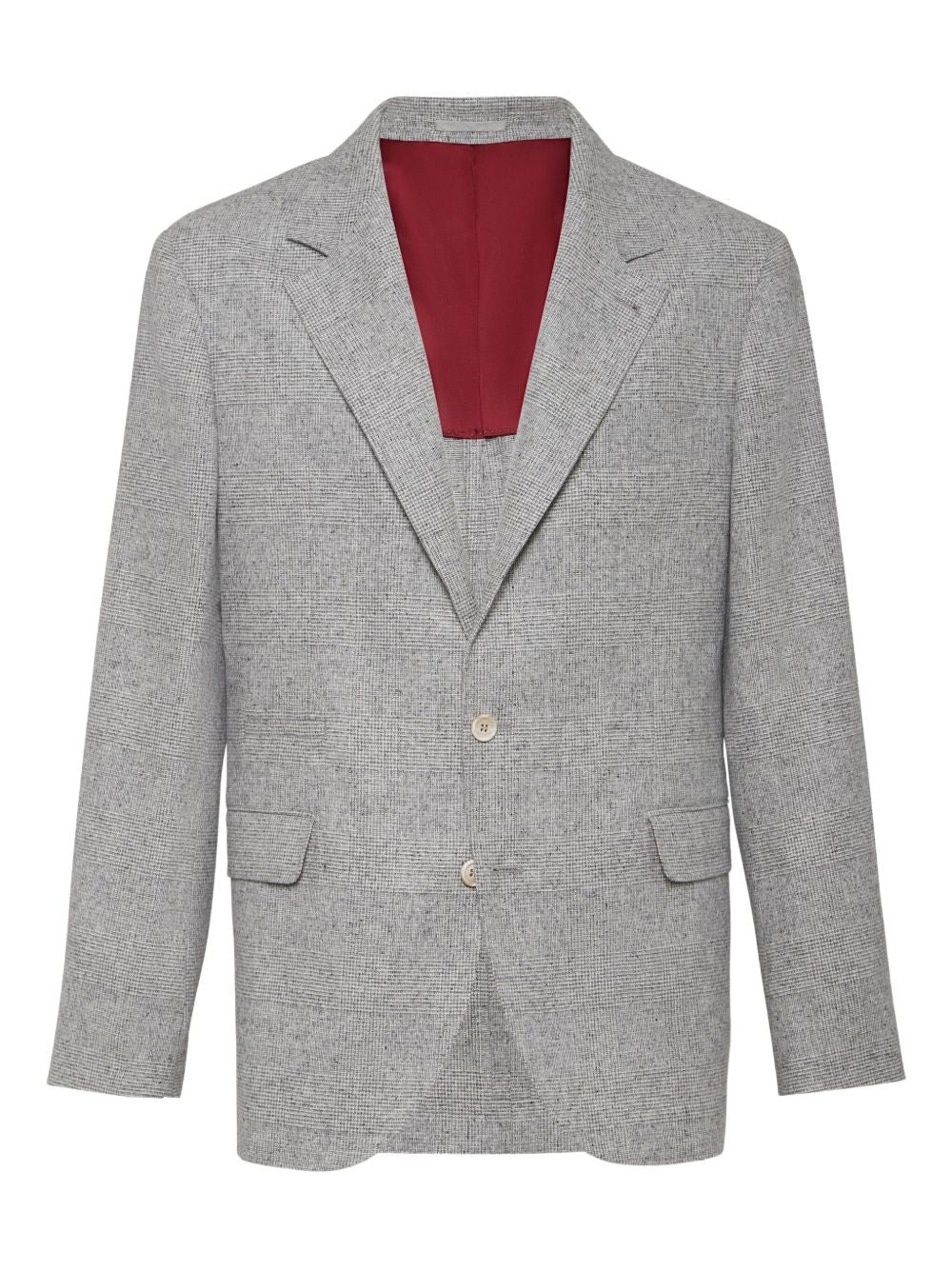 Silk, wool and cashmere flecked Prince of Wales flannel deconstructed blazer