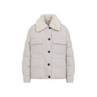 Brunello Cucinelli Puffer Polyester Jacket. Crafted from light grey tech fabric, quilted pattern, feather-filled, white shearling pointed collar, front button and concealed zip fastening, two flap pockets on the chest, buttoned cuffs, straight hem. Feather Down | 55%POLYESTSTER 45%COTTON 90%DOWN 10%FEATHER 100%SHEARLING Size Type: IT SKU: MG5017688Grey Our Products Are 100% Genuine. In All Cases We Stand By The Authenticity Of Every Product Sold On Our Site. All sales are final and we only accept returns for quality issue. Buyer is responsible for any import tax/duty if applicable.