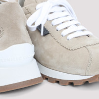 Brunello Cucinelli Climb Beige Suede Leather Sneakers. Pure climb beige suede leather sneakers, round neck, top contrasting white lace-up fastening, side patch logo, back white detail, white and beige sole. Suede | 100%SUEDE LEATHER 100%RUBBER Size Type: IT SKU: MZSFG2110PNude&Neutrals Our Products Are 100% Genuine. In All Cases We Stand By The Authenticity Of Every Product Sold On Our Site. All sales are final and we only accept returns for quality issue. Buyer is responsible for any import tax/duty if applicable.