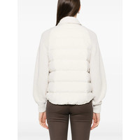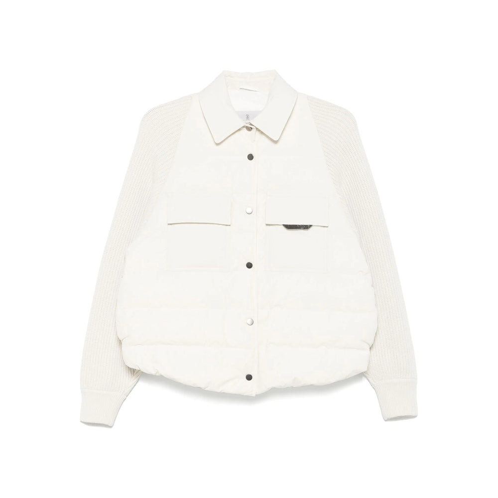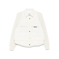 Water-resistant techno cotton and virgin wool, cashmere and silk knit down jacket with shiny flap de