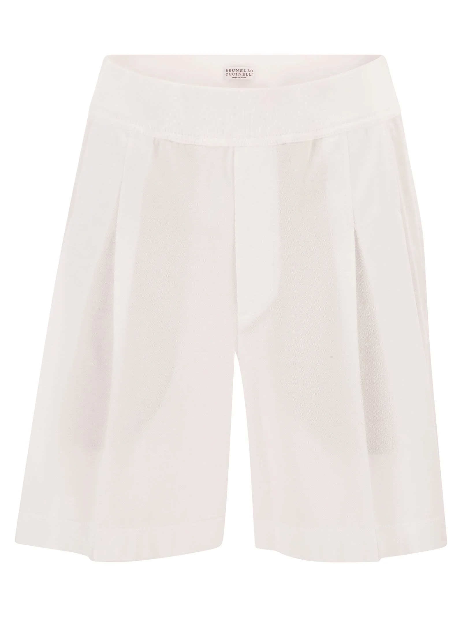 The refined taste of the sports club world inspires a selection of creations that enrich the Spring-Summer collection. The Active shorts in stretch cotton pique are embellished with double pleats at the front and welt pockets at the back for casual elegance. The pull-up fit increases comfort, while the Solomeo coat of arms adds a distinctive touch. Research into the best materials elevates the sporty taste of cotton pique, inspired by the male wardrobe. The fabric is comfortable, lightweight and extremely pleasant to wear, perfect for any season. A small percentage of synthetic fibre completes the comfort. - Pull-up trousers - Vertical front pockets - Slash pockets at the back DESIGNER ID: ML944P9238 C159 95% Cotton, 5% Elastane Lining: 65% Acetate, 35% Polyester Knit part: 100% Cotton Size Type: IT SKU: ML944P9238C159 Our Products Are 100% Genuine. In All Cases We Stand By The Authenticity Of Every Product Sold On Our Site. All sales are final and we only accept returns for quality issue. Buyer is responsible for any import tax/duty if applicable.