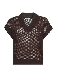 Brunello Cucinelli Women Brown Dazzling Mesh V-Neck Sweater