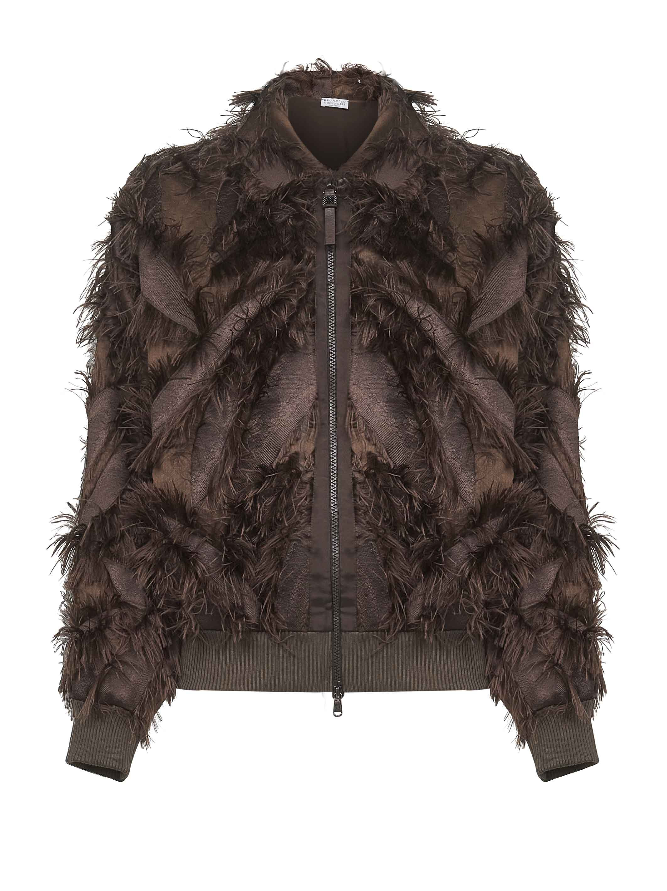 Brunello Cucinelli Women Brown Dracaena Fil Coupé Shiny Zipper Pull Bomber Jacket