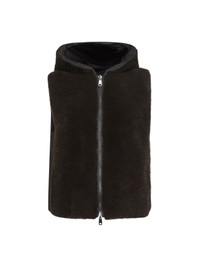 Cashmere shearling reversible hooded vest with precious trim