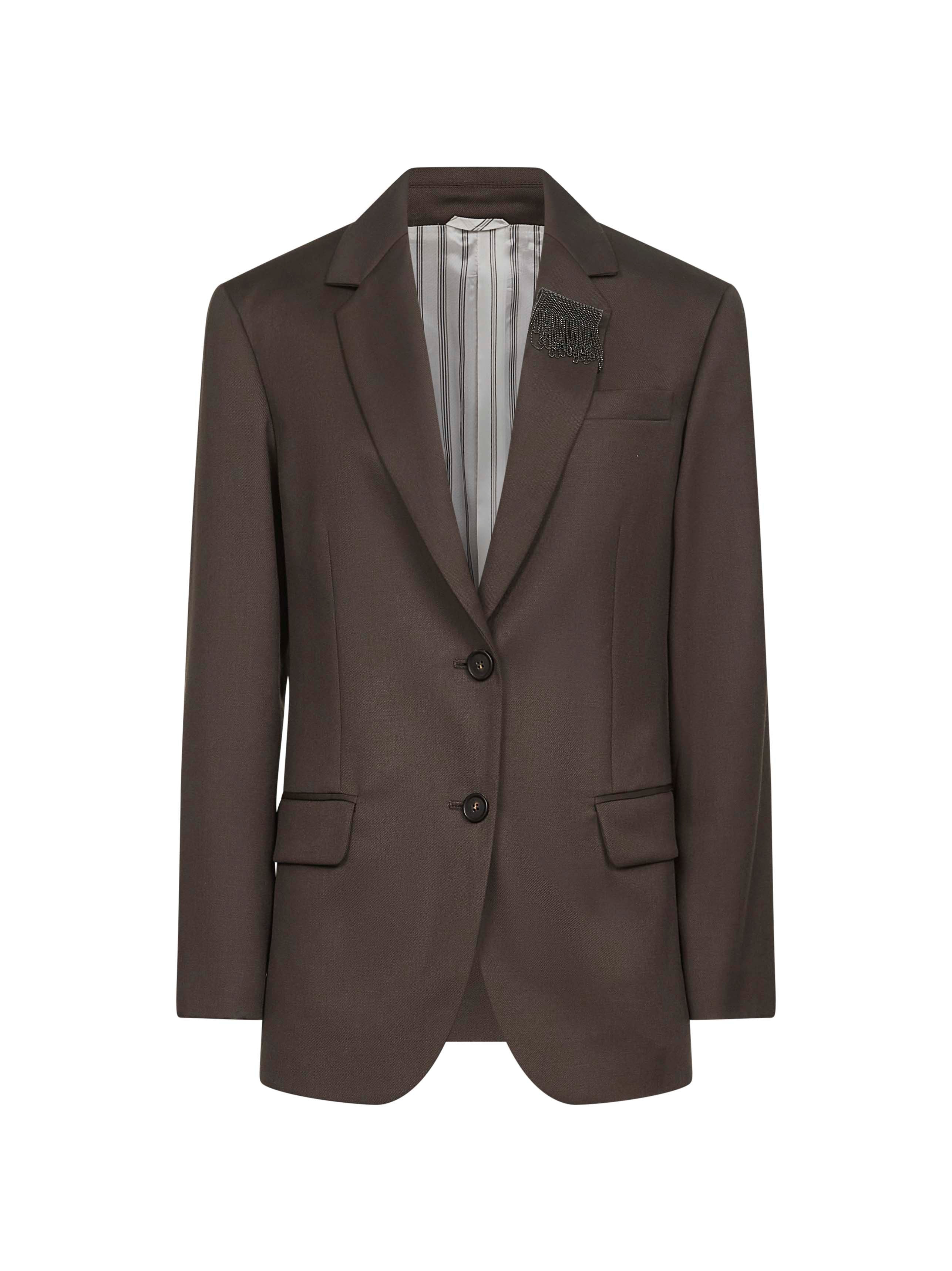 Brunello Cucinelli Women Brown Twill Single-Breasted Blazer
