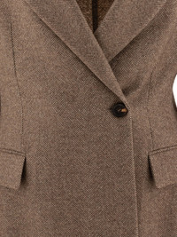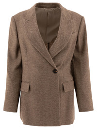 Brunello Cucinelli's techno wool carded chevron blazer with monile is the perfect blend of elegance and modernity. Inspired by the world of tailoring, this iconic retro-style garment comes in a slightly over fit that enhances any feminine silhouette. The presence of precious details such as the monile adds a touch of refined luminosity. || - Horn button closure - Spear lapels - Silk-blend crepe lining - Breast pocket - Low flap pockets - Cuffs with four horn buttons - Single back slit - Nickel-free jewel decoration - Solid color - Regular fit - Long sleeves || For a sophisticated look, pair this blazer with a white silk shirt and tonal palazzo pants. Complement it with pumps and a medium-sized shoulder bag for a sophisticated and timeless outfit. 51% virgin wool 36% wool 12% polyamide 1% elastane SKU: MB1317163C001 Our Products Are 100% Genuine. In All Cases We Stand By The Authenticity Of Every Product Sold On Our Site. All sales are final and we only accept returns for quality issue. Buyer is responsible for any import tax/duty if applicable.