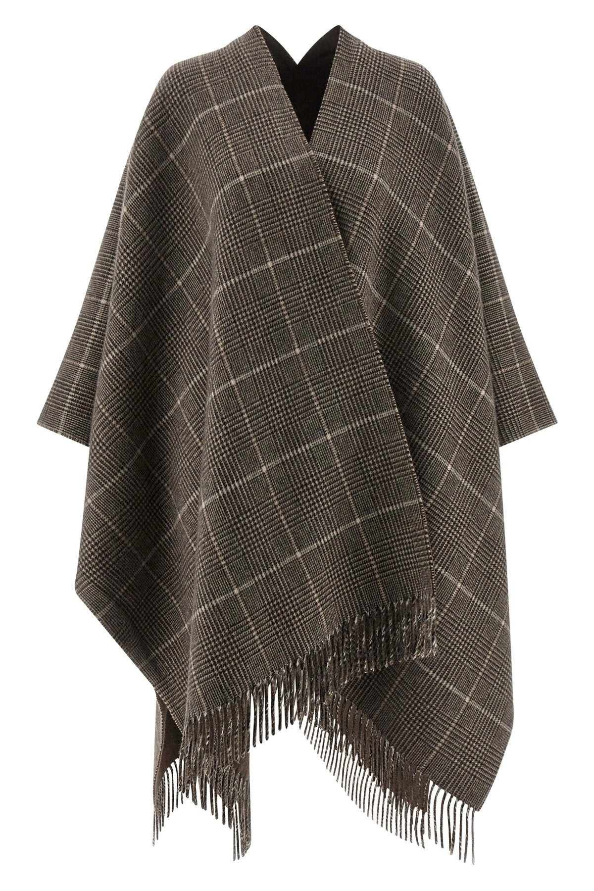 Prince of Wales checked fringed poncho