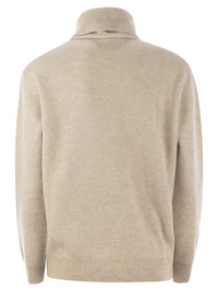 Cashmere English rib turtleneck sweater with monili