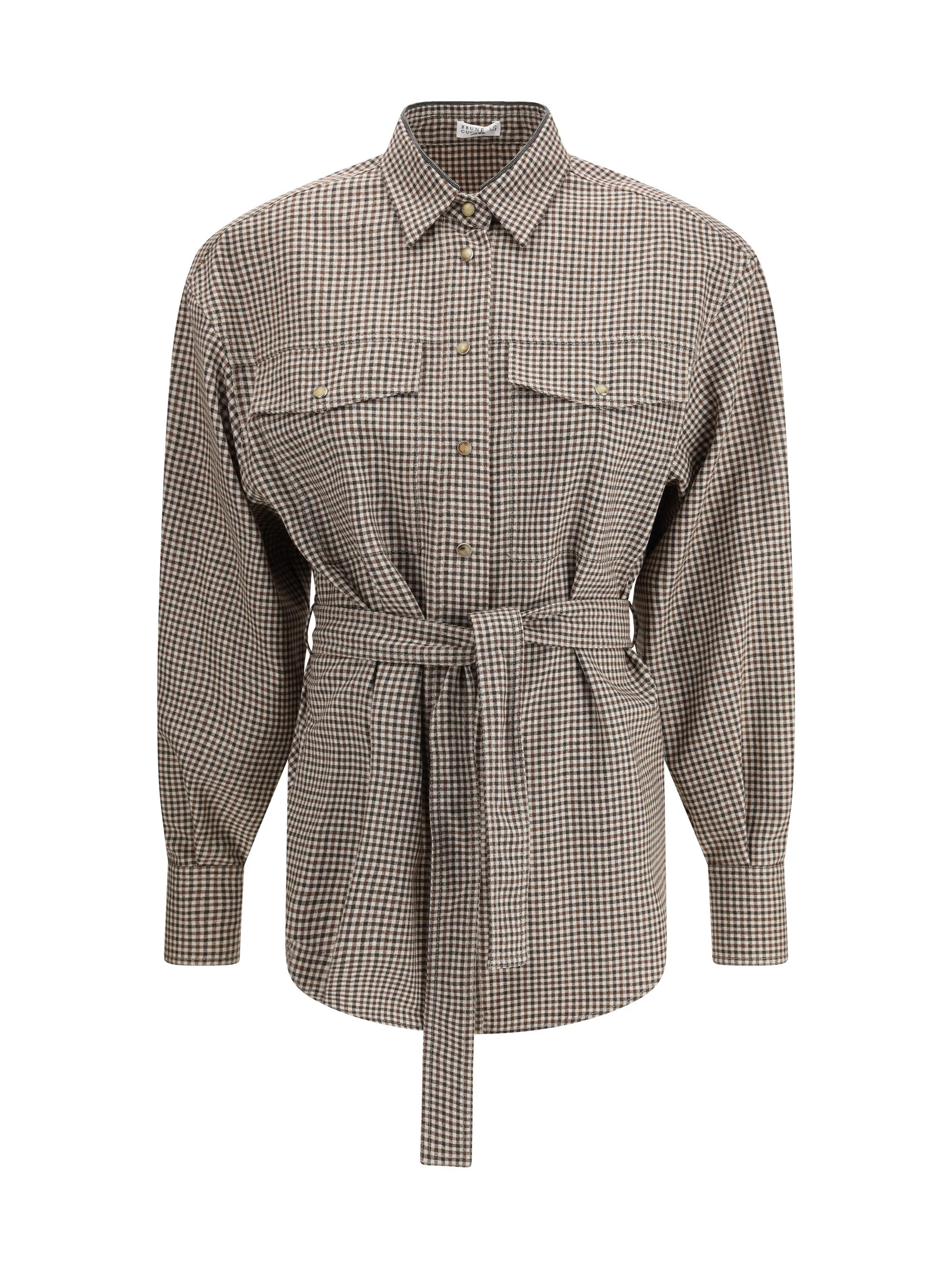 The checked virgin wool Shirt by Brunello Cucinelli embodies a refined balance of tradition and modern femininity. The country-inspired check pattern evokes a timeless charm, while the soft fit with voluminous sleeves and dropped shoulders lends an elegant reinterpretation of classic menswear. The removable belt gently defines the waist, and the monile embroidery on the collar adds a delicate sparkle — a signature element that enhances the shirt with the distinctive elegance of the Brunello Cucinelli aesthetic. Size Type: INT SKU: MB149MQ206C001 Our Products Are 100% Genuine. In All Cases We Stand By The Authenticity Of Every Product Sold On Our Site. All sales are final and we only accept returns for quality issue. Buyer is responsible for any import tax/duty if applicable.