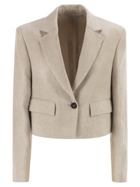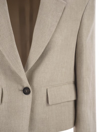 Tailoring inspirations and contemporary attitude define the style of this cropped chevron jacket in linen and cotton. The codes of classic masculine elegance are reinterpreted with a feminine twist, giving life to a summery, casual garment enhanced by the freshness of the fabric and the cropped cut. Behind the collar, precious jewelry embroidery stands out, completing the jacket with an unexpected touch of light in pure Brunello Cucinelli style. The linen and cotton chevron combines yarns of different thicknesses to create a herringbone pattern with a wavy and slightly three-dimensional look. - Horn button closure - Traditional lapels - Low flap pockets - Full silk blend crepe lining - Nickel-free metal decoration DESIGNER ID: MH5287702 C001 88% Linen, 12% Cotton Lining: 74% Acetate, 26% Silk Sleeve lining: 65% Acetate, 35% Polyester Application Eco finish brass Size Type: IT SKU: MH5287702C001 Our Products Are 100% Genuine. In All Cases We Stand By The Authenticity Of Every Product Sold On Our Site. All sales are final and we only accept returns for quality issue. Buyer is responsible for any import tax/duty if applicable.