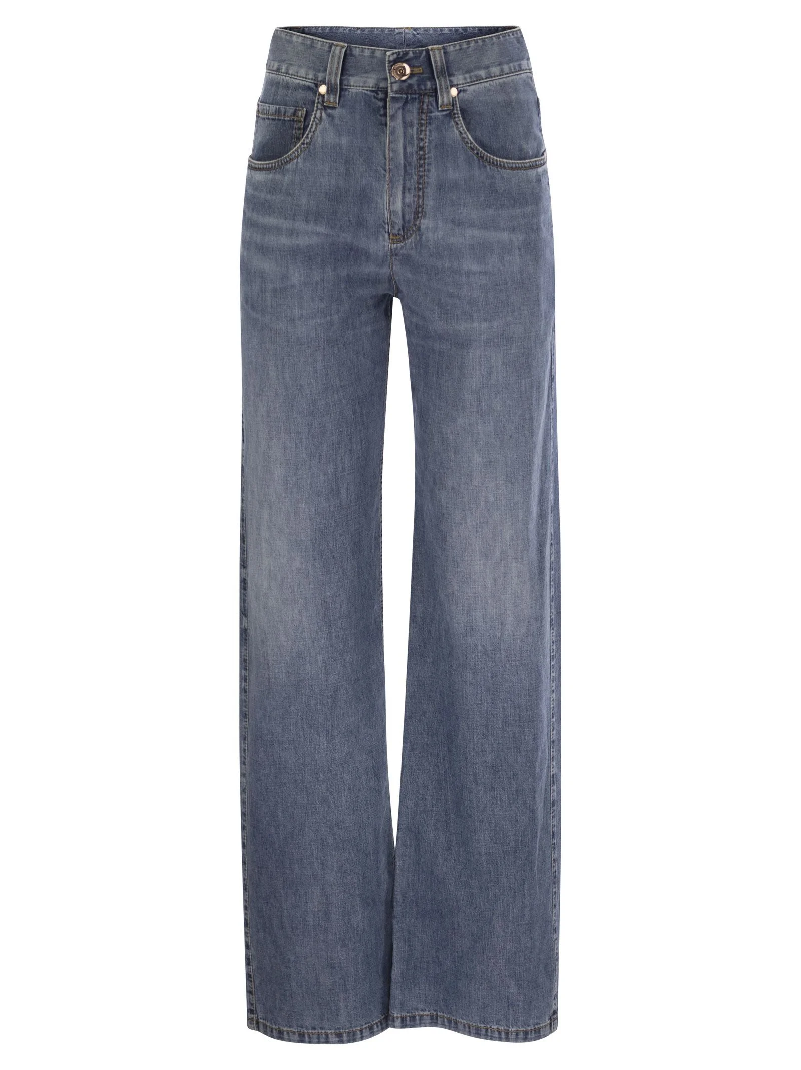 Casual style and refined details come together in the Contemporary Loose trousers in lightweight denim. The straight, relaxed and loose lines are perfectly matched to the slightly ‘vintage’ look of the fabric, characterised by shaded and lived-in nuances. The lightweight pure cotton denim uses combed threads that give the texture a light, compact and slightly shiny appearance. The fabric dyeing spreads the colour with slight colour nuances, which can evolve with normal use and washing, valuable features that make each model unique. - Zip fastening with button - Front pockets with breast pocket - Back patch pockets DESIGNER ID: MH192P5565 C8982 100% Cotton Application: 100% Leather Application Eco finish brass Size Type: IT SKU: MH192P5565C8982 Our Products Are 100% Genuine. In All Cases We Stand By The Authenticity Of Every Product Sold On Our Site. All sales are final and we only accept returns for quality issue. Buyer is responsible for any import tax/duty if applicable.