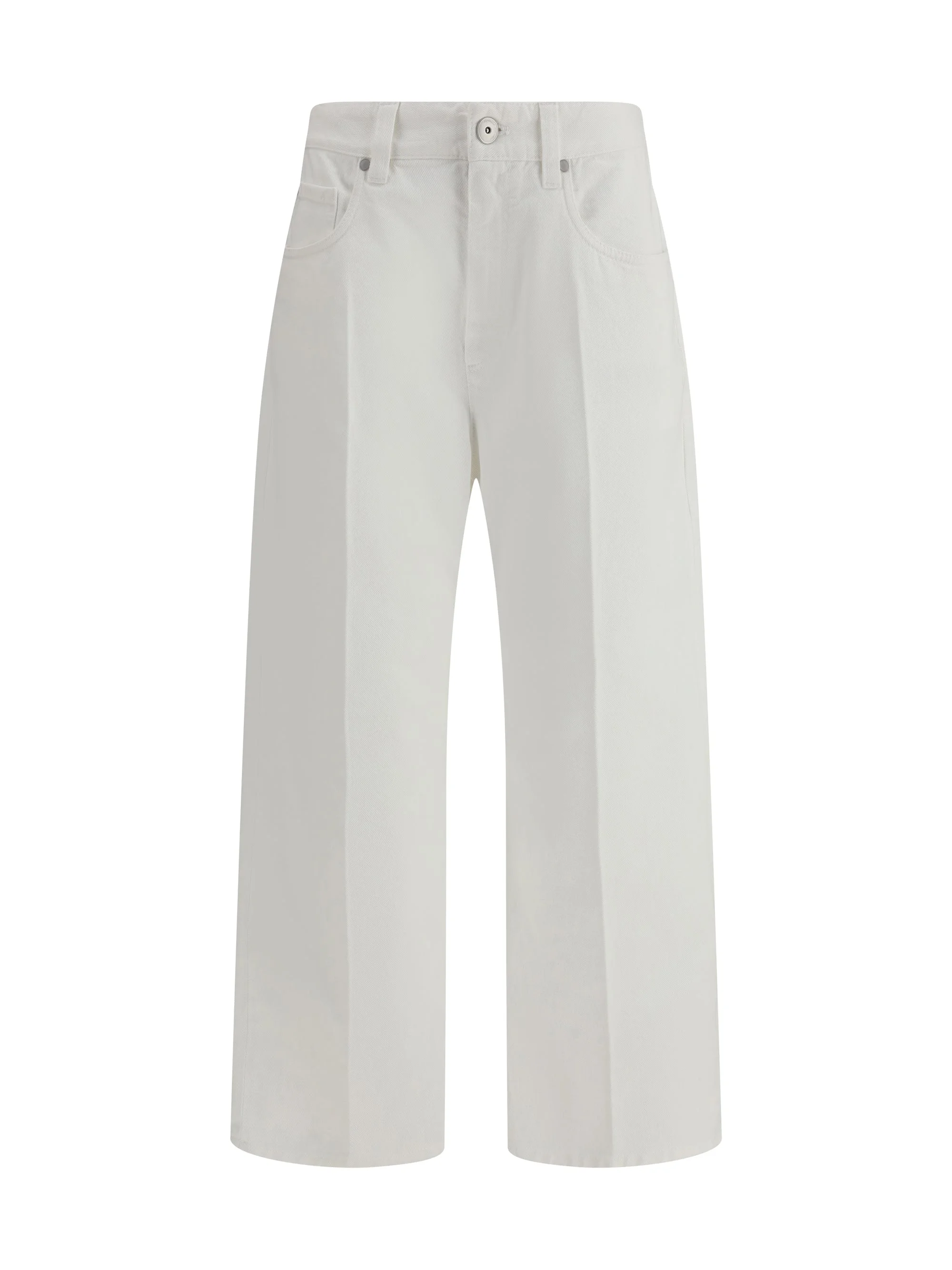 The “Contemporary Square" Trousers by Brunello Cucinelli are crafted from garment-dyed pure cotton denim, featuring a boxy cropped silhouette with a straight leg and pressed crease for a refined, structured look. The nickel-free monile detail on the back belt loop adds a signature touch of sparkle. Designed with a zip and button closure, classic belt loops, and patch pockets at the front and back, this model combines timeless elegance with modern versatility. Made from sustainable materials, these trousers reflect the brand’s dedication to craftsmanship and ethical luxury. Size Type: IT SKU: M0H81P4008C600 Our Products Are 100% Genuine. In All Cases We Stand By The Authenticity Of Every Product Sold On Our Site. All sales are final and we only accept returns for quality issue. Buyer is responsible for any import tax/duty if applicable.