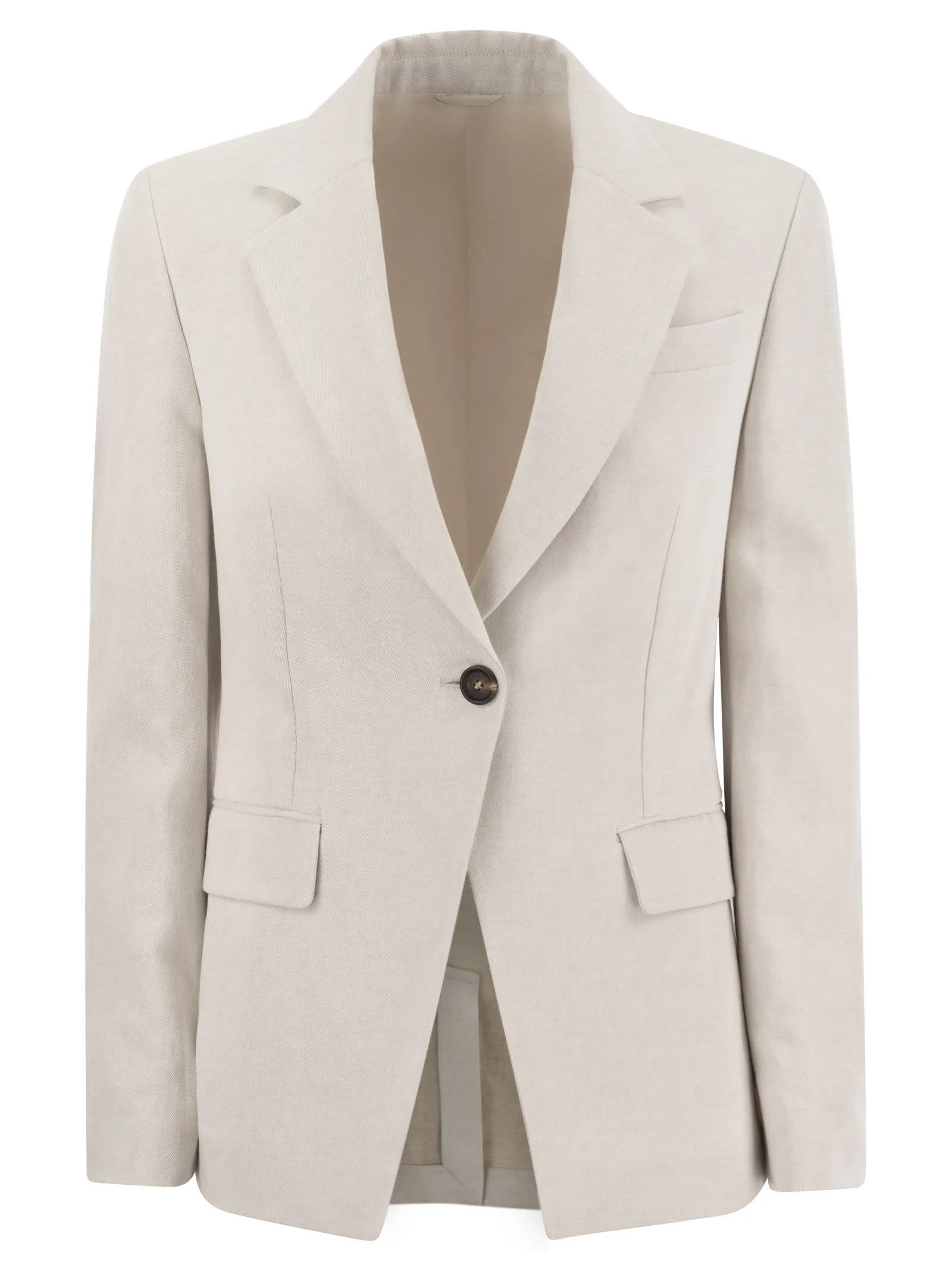 Sartorial inspirations are reworked in a feminine key in the new cotton and linen jacket. The combination of the two natural fibres creates a fabric with a soft and fresh look. The silk-blend crepe half lining perfects wearing comfort. - Horn button fastening - Half-lined in silk-blend crepe - Welt pockets with flap and breast pocket - Cuffs with horn buttons - Single back slit - Regular fit DESIGNER ID: MH5612033 C455 80% Cotton, 20% Linen Lining: 74% Acetate, 26% Silk Size Type: IT SKU: AB021416 Our Products Are 100% Genuine. In All Cases We Stand By The Authenticity Of Every Product Sold On Our Site. All sales are final and we only accept returns for quality issue. Buyer is responsible for any import tax/duty if applicable.