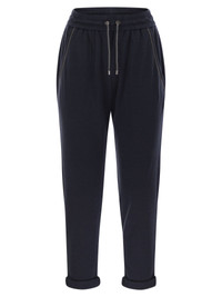 Cotton and silk interlock trousers with shiny pocket detail