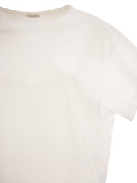 This T-shirt interprets Brunello Cucinelli's refined minimalism through a clean design and sophisticated details. Made from pure cotton, it features a lightweight construction with sleeves and side inserts in sheer fabric that create a delicate see-through effect, naturally enhancing the silhouette. The soft cut and simple lines make this garment extremely versatile, ideal for completing everyday looks with understated elegance or adding a sophisticated touch to more refined outfits. - Crew neck - Short sleeves in sheer fabric - Sheer side inserts - Soft fit - Essential and contemporary design DESIGNER ID: M0T81BX800 C6159 100% Cotton 2 Fabric: 100% Cotton Size Type: INT SKU: M0T81BX800C6159 Our Products Are 100% Genuine. In All Cases We Stand By The Authenticity Of Every Product Sold On Our Site. All sales are final and we only accept returns for quality issue. Buyer is responsible for any import tax/duty if applicable.