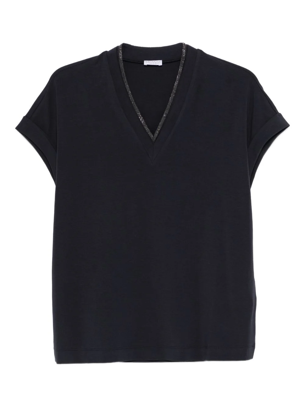 Brunello Cucinelli Women Cotton V-Necked T-Shirt