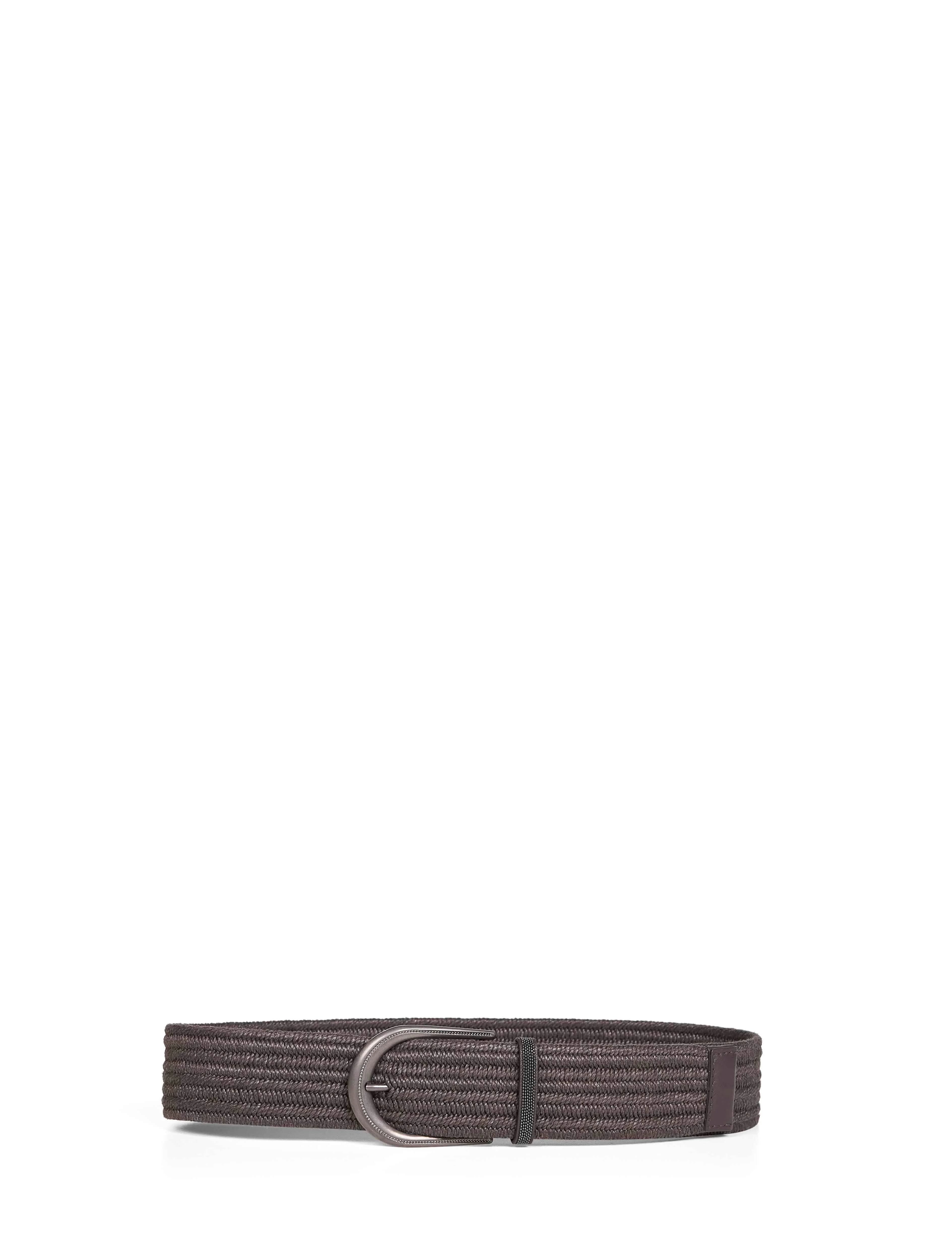 Brunello Cucinelli Women Dark Brown Linen Shiny Loop Braided Belt