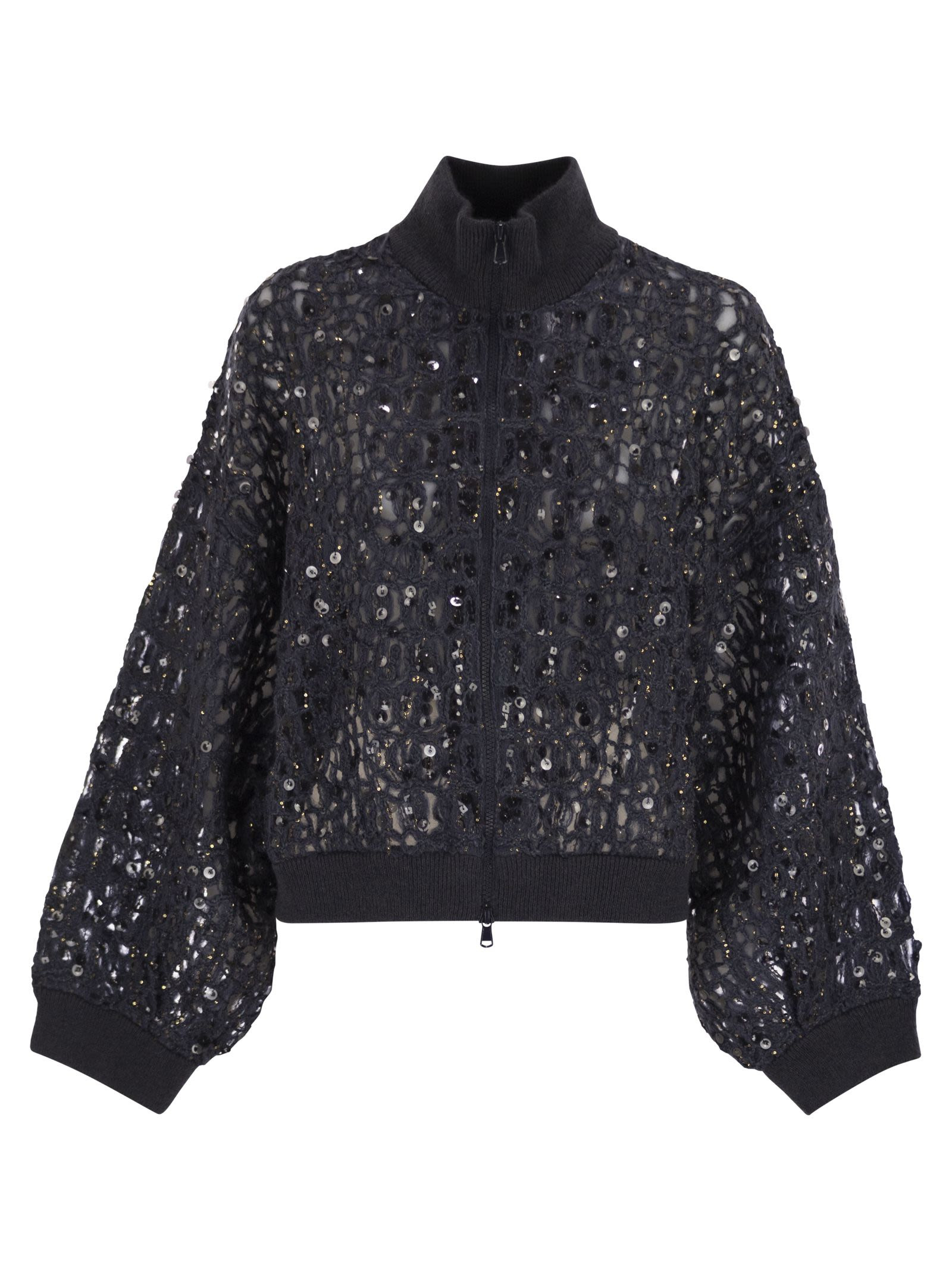 Dazzling croc embroidery cardigan in mohair, silk and linen
