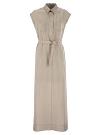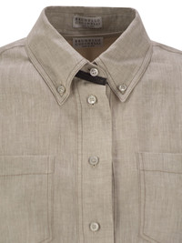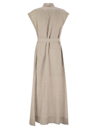 Precious decorations and relaxed volumes come together in the new linen dress, a summer material par excellence. The rustic and natural texture of the fabric is combined with delicate embroidery in shiny monile that illuminates the collar with a feminine note of light in pure Brunello Cucinelli style. The classic elongated silhouette features a button fastening and matching belt to accentuate the waist. The summer fibre par excellence enriches the Brunello Cucinelli fabric collection. The rustic, slightly irregular and dry texture of the linen fibre gives the garment a fresh, natural and light look. - Mother-of-pearl button fastening - Classic collar - Two breast pockets - Nickel-free jewel decoration DESIGNER ID: MM633AHA92 C200 100% Linen Brass finish Eco applique Removable petticoat: 74% Acetate, 26% Silk Size Type: INT SKU: MM633AHA92C200 Our Products Are 100% Genuine. In All Cases We Stand By The Authenticity Of Every Product Sold On Our Site. All sales are final and we only accept returns for quality issue. Buyer is responsible for any import tax/duty if applicable.