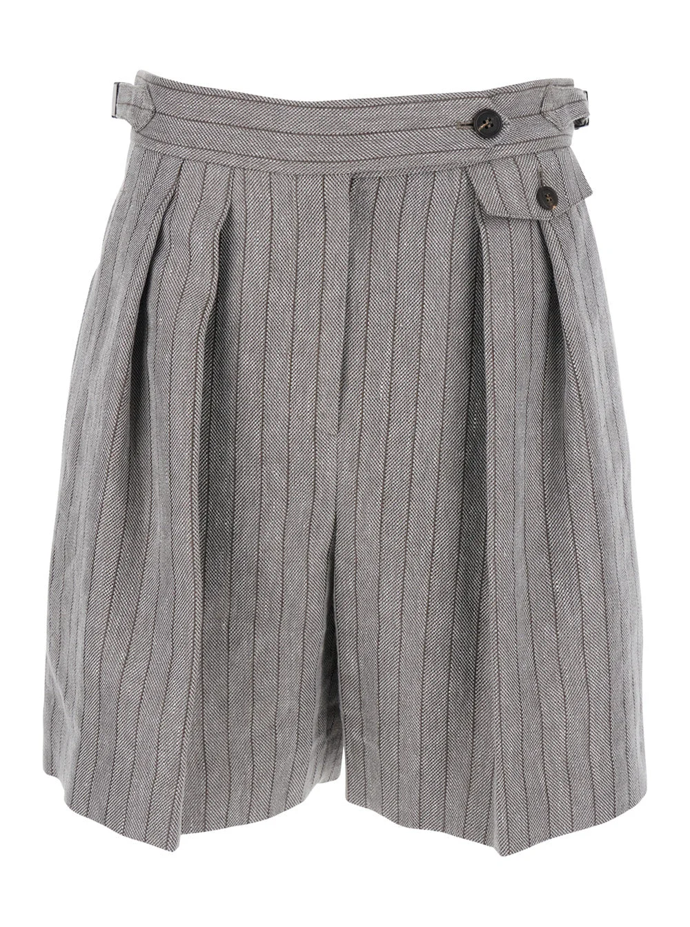 Brunello Cucinelli Women Grey Bermuda Panrs With Off-Centered Button Closure And All-Over Striped Mo