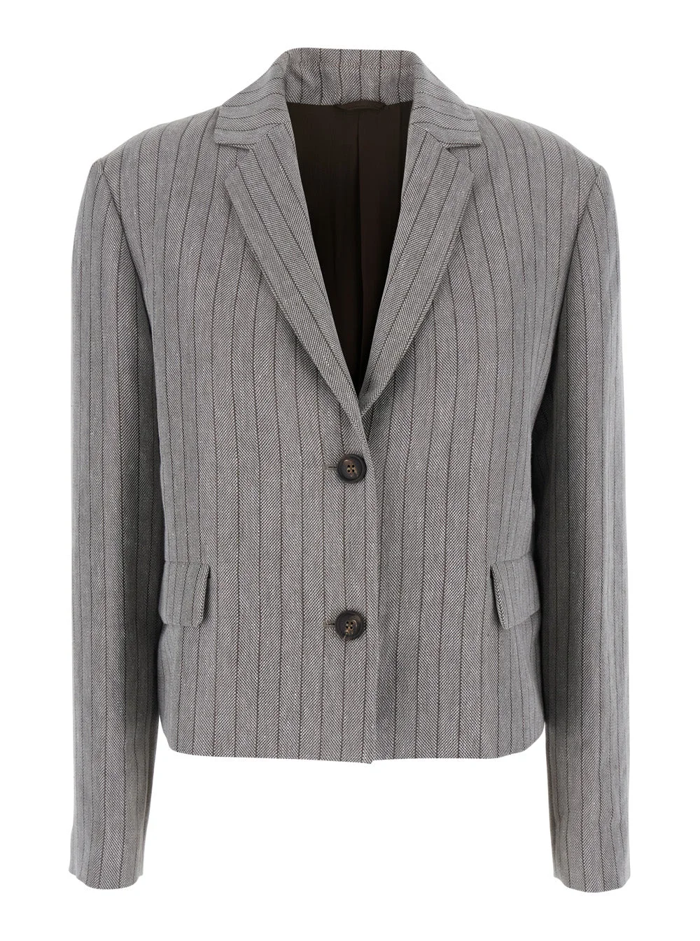 Brunello Cucinelli Women Grey Jacket With Notched Revers And All-Over Striped Motif In Linen Blend W