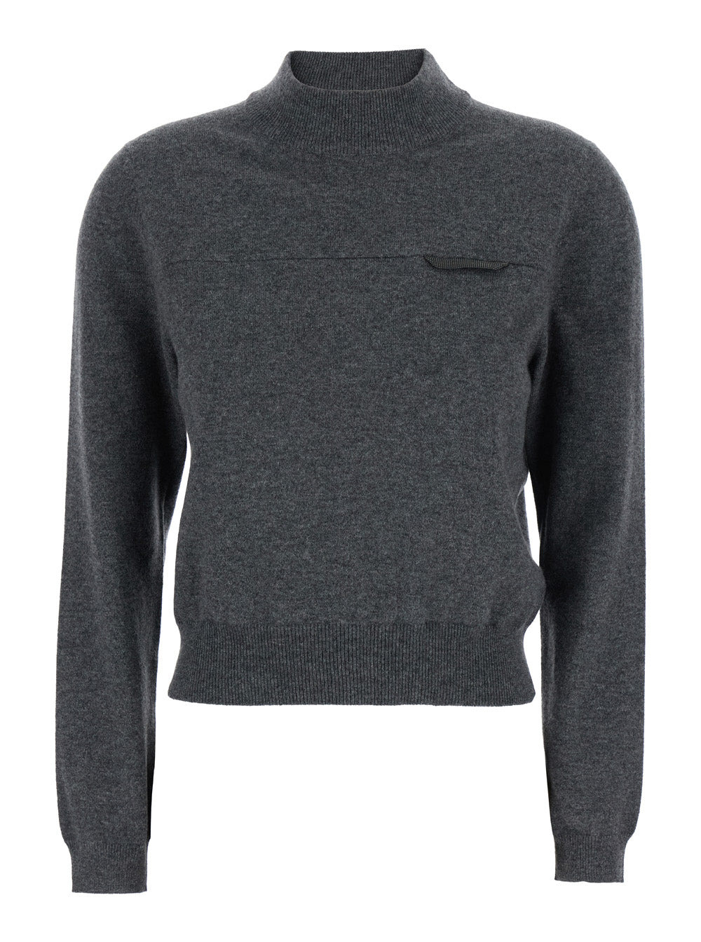 Brunello Cucinelli Women Grey Sweater With Mock Neck And Monil Detail On The Front In Cashmere Woman