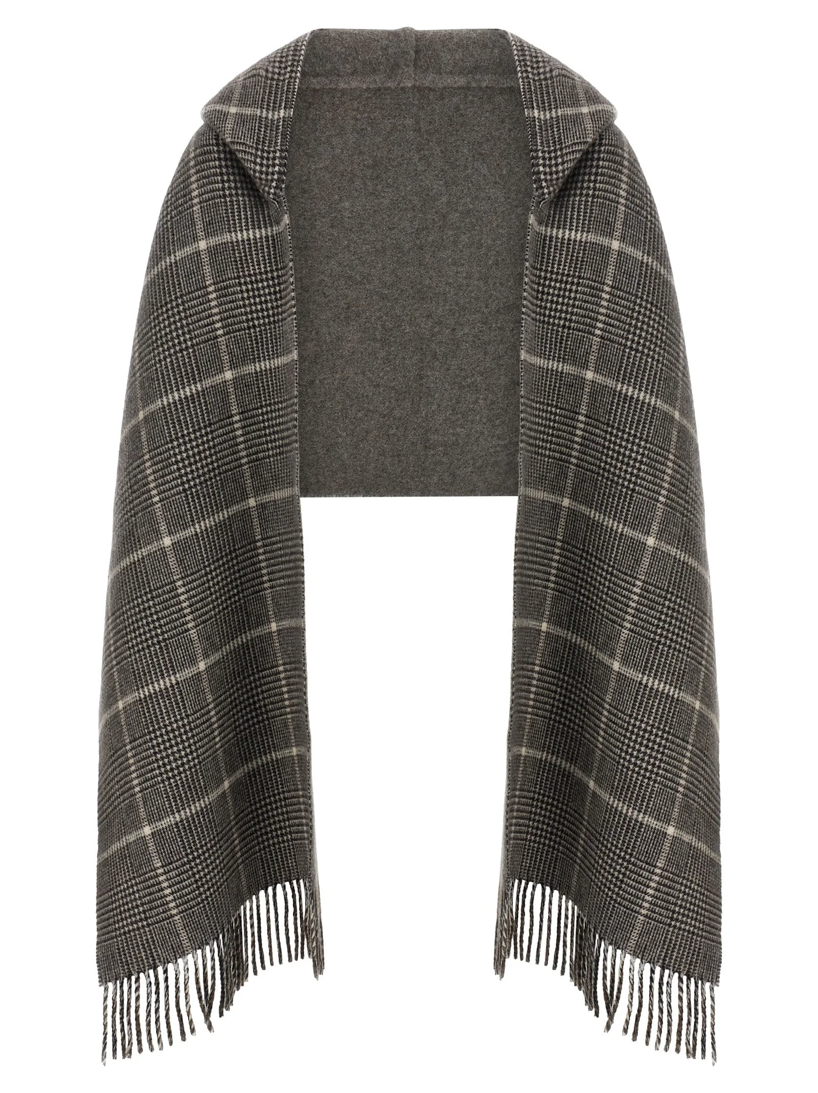 Double face scarf with check cashmere hood and solid color and fringed edges. 100% cashmere SKU: MSCDAGW84CDV55 Our Products Are 100% Genuine. In All Cases We Stand By The Authenticity Of Every Product Sold On Our Site. All sales are final and we only accept returns for quality issue. Buyer is responsible for any import tax/duty if applicable.