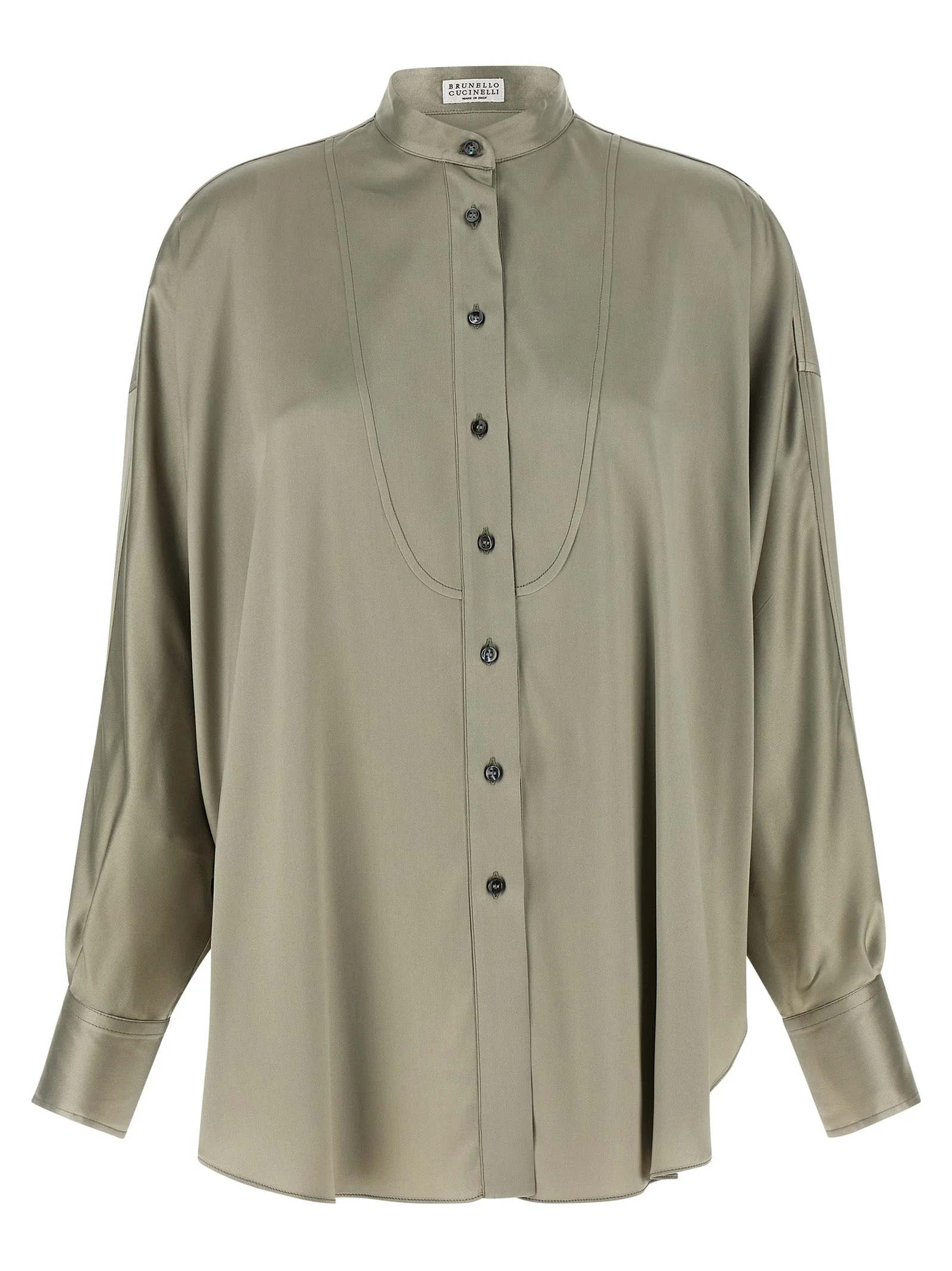 Stretch silk satin shirt, mandarin collar with Monile detail on the back, front button closure, long wide sleeves with cuffs and dropped shoulders, rounded hem. oversized fit 96% silk, 4% elastane SKU: M0C59MY906C9125 Our Products Are 100% Genuine. In All Cases We Stand By The Authenticity Of Every Product Sold On Our Site. All sales are final and we only accept returns for quality issue. Buyer is responsible for any import tax/duty if applicable.