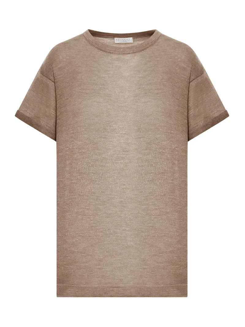 - Crew neck - Short sleeves - Rolled cuffs - Lurex thread - Regular fit - Straight hem - Cashmere and silk blend - Color: Mastic Made in Italy Composition: Cashmere 51%cashmere 22%Silk 20%Polyamide 7%PM Color code: C8573 MASTICE M41810000 SKU: M41810000C8573MASTICE Our Products Are 100% Genuine. In All Cases We Stand By The Authenticity Of Every Product Sold On Our Site. All sales are final and we only accept returns for quality issue. Buyer is responsible for any import tax/duty if applicable.