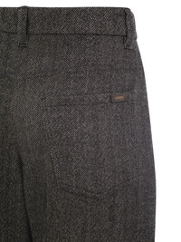 Informal volumes combine with fine fabrics to delineate the relaxed silhouette of the Loose Flared trousers. The tailored fit gives the model a clean, elegant silhouette. The timeless chevron pattern emphasises the timeless elegance of the garment. The chevron pattern enhances the structured texture of the fabric made of fine techno wool. The noble qualities of the natural fibre, such as softness and breathability, meet a reduced proportion of synthetic fibres to preserve the structure of the natural yarn. - Zip closure with metal hook - Back pockets - Lined DESIGNER ID: MB127P8724 C301 51% Virgin wool, 36% Wool, 12% Polyamide, 1% Elastane Lining: 36% Polyester, 32% Acetate, 32% Cupro Application Eco finish brass Application 100% Leather Size Type: IT SKU: MB127P8724C301 Our Products Are 100% Genuine. In All Cases We Stand By The Authenticity Of Every Product Sold On Our Site. All sales are final and we only accept returns for quality issue. Buyer is responsible for any import tax/duty if applicable.