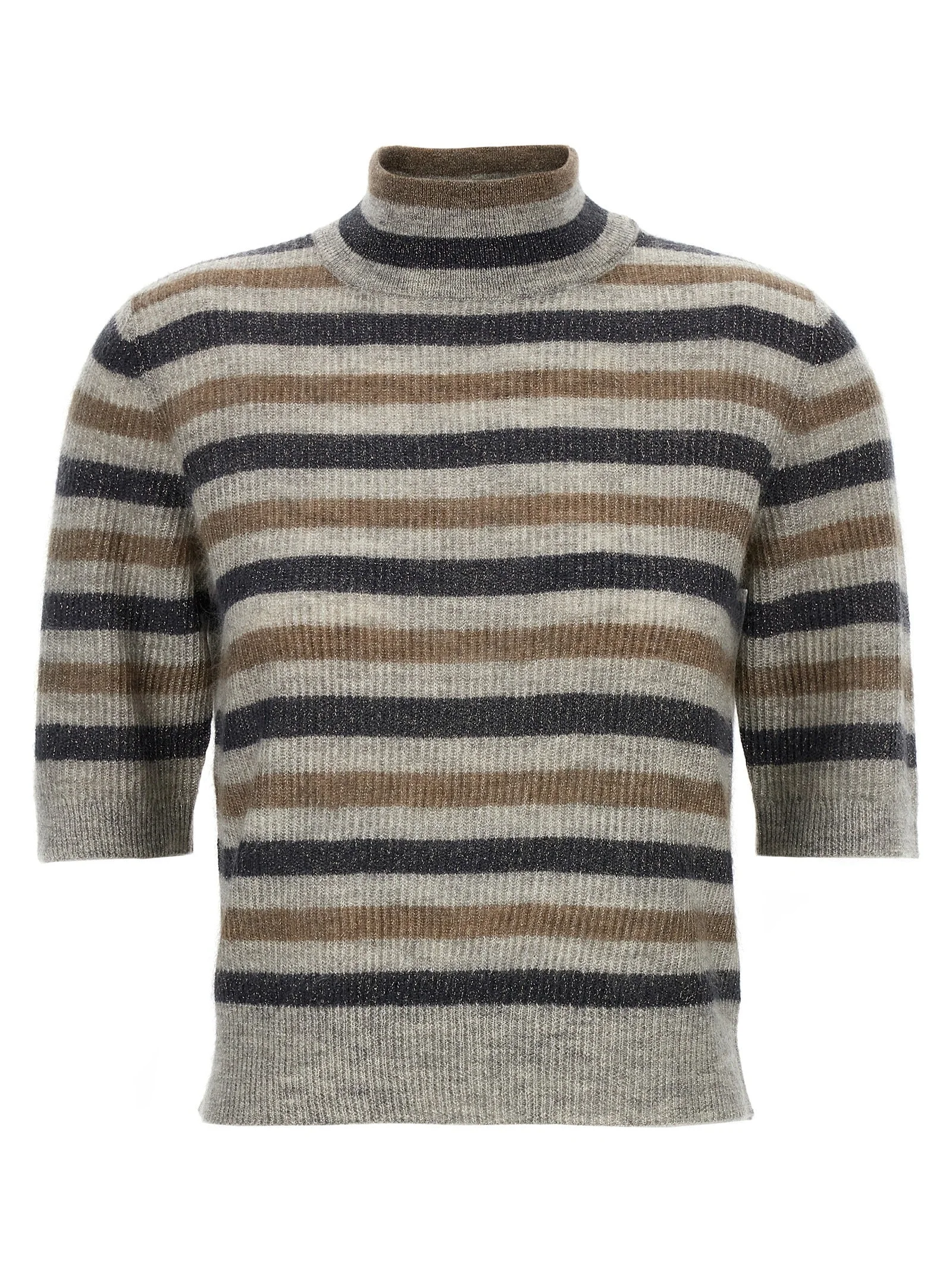 Striped wool blend sweater with lurex threads, crop model, high neck, short sleeves. true to size fit 42% mohair wool 38% polyamide 12% wool 8% metal SKU: MBG236814PCLM03 Our Products Are 100% Genuine. In All Cases We Stand By The Authenticity Of Every Product Sold On Our Site. All sales are final and we only accept returns for quality issue. Buyer is responsible for any import tax/duty if applicable.