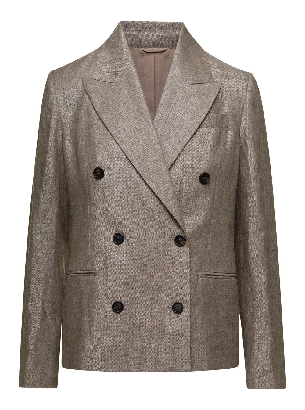 Brunello Cucinelli Women Metallic Double-Breasted Jacket With Peak Revers In Linen Blend Woman