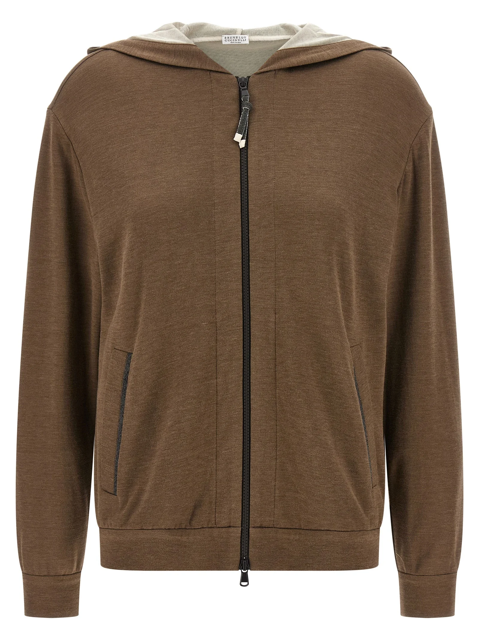Cotton and silk blend melange hoodie, pockets with Monile detail, front zip closure with Monile zip puller, long cuffed sleeves. true to size fit 67% cotton 31% silk 2% polyamide SKU: MD828SB806C9122 Our Products Are 100% Genuine. In All Cases We Stand By The Authenticity Of Every Product Sold On Our Site. All sales are final and we only accept returns for quality issue. Buyer is responsible for any import tax/duty if applicable.