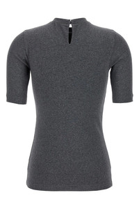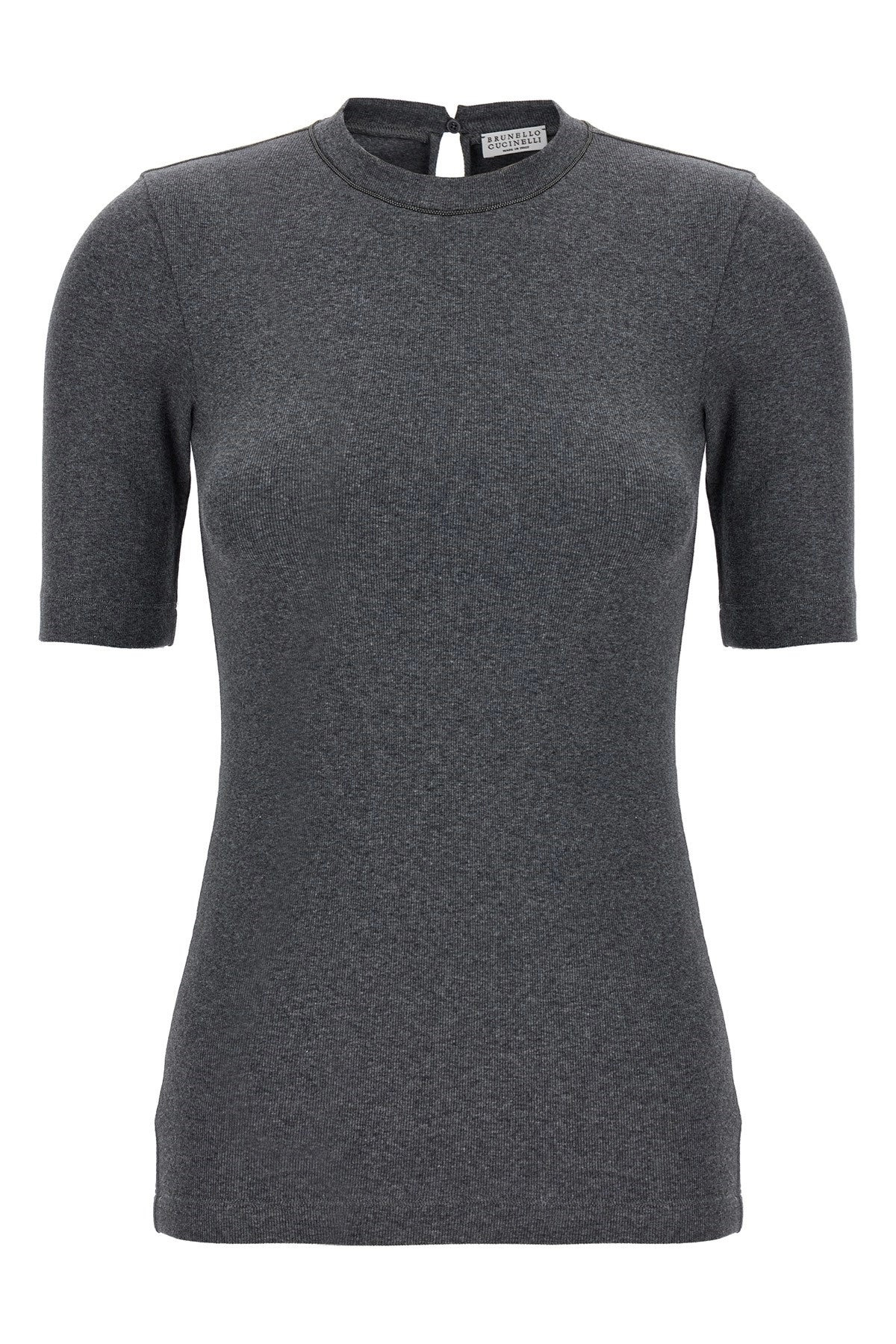 Stretch cotton ribbed jersey T-shirt with crew neck with Monile detail, back button closure with teardrop cut-out detail, and short sleeves. Color: Gray Size & Fit: true to size fit Composition: 94% cotton 6% elastane Made in: Italy SKU: MPTC8BJ310CV563 Our Products Are 100% Genuine. In All Cases We Stand By The Authenticity Of Every Product Sold On Our Site. All sales are final and we only accept returns for quality issue. Buyer is responsible for any import tax/duty if applicable.